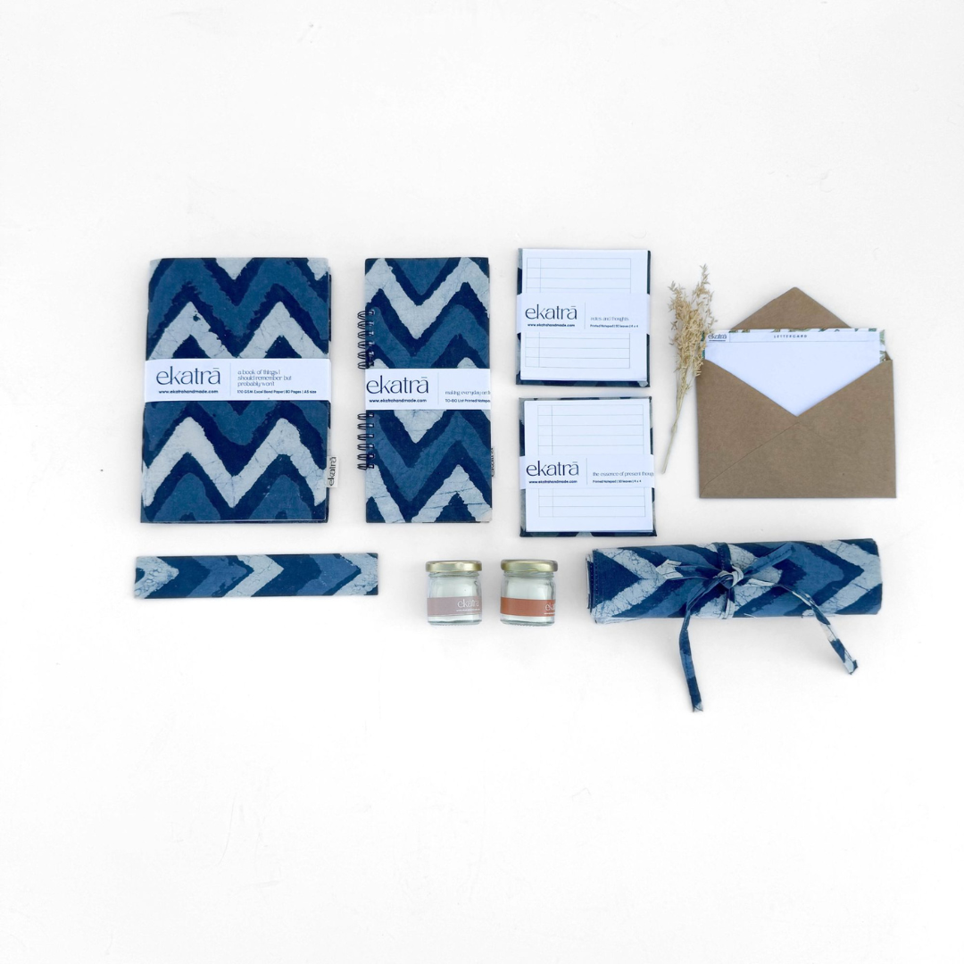 - Thoughtfully handcrafted, this hamper includes a curated selection of functional and sustainable stationery essentials that elevate everyday work life.