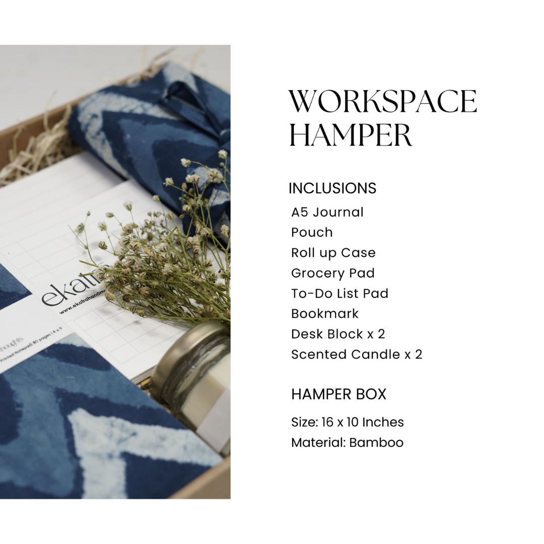 - The Work Space Gift Hamper by Ekatra is designed to bring elegance, organization, and inspiration to any desk.