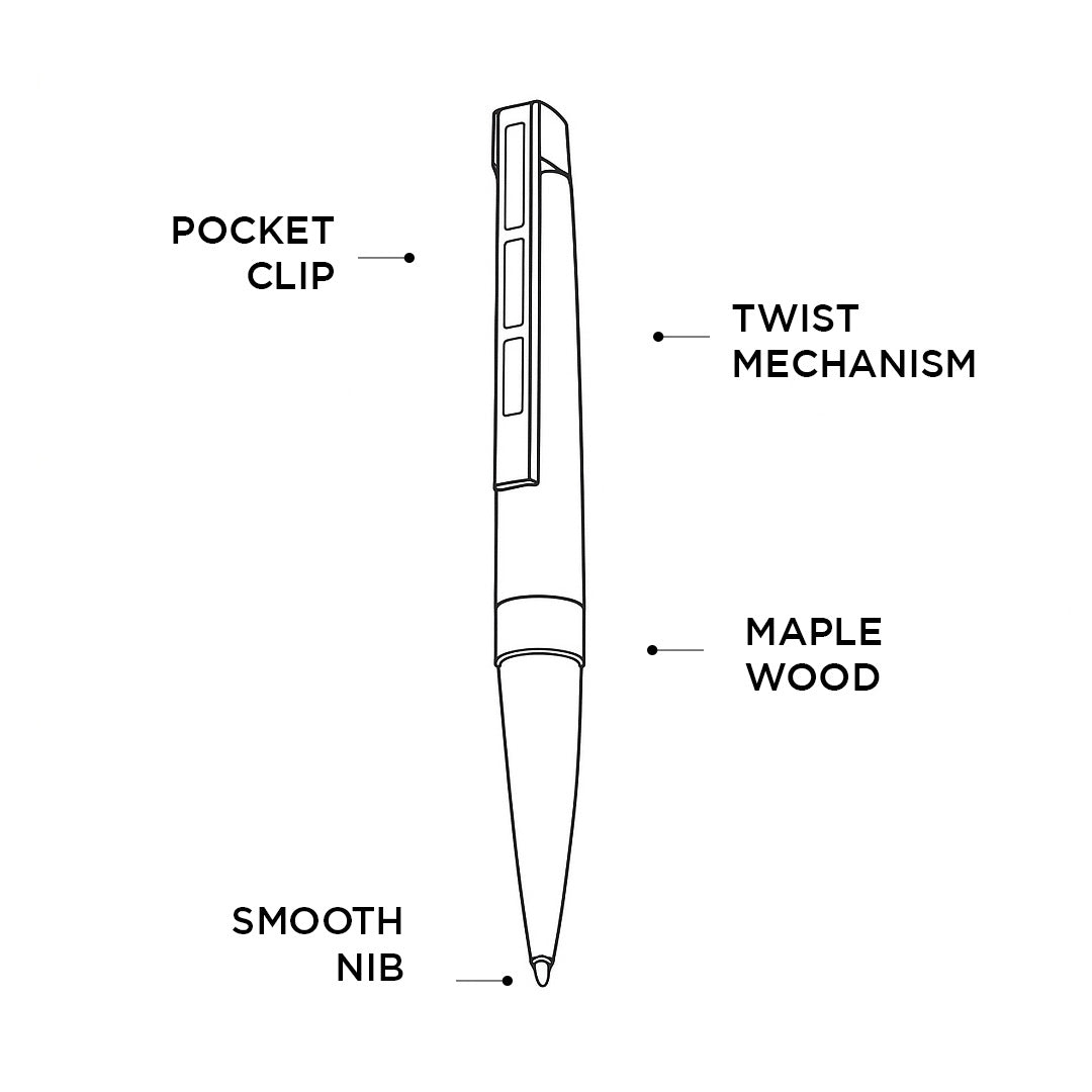 - Crafted from genuine wood, the pen features a beautifully finished body that highlights the natural grain, making each piece unique.