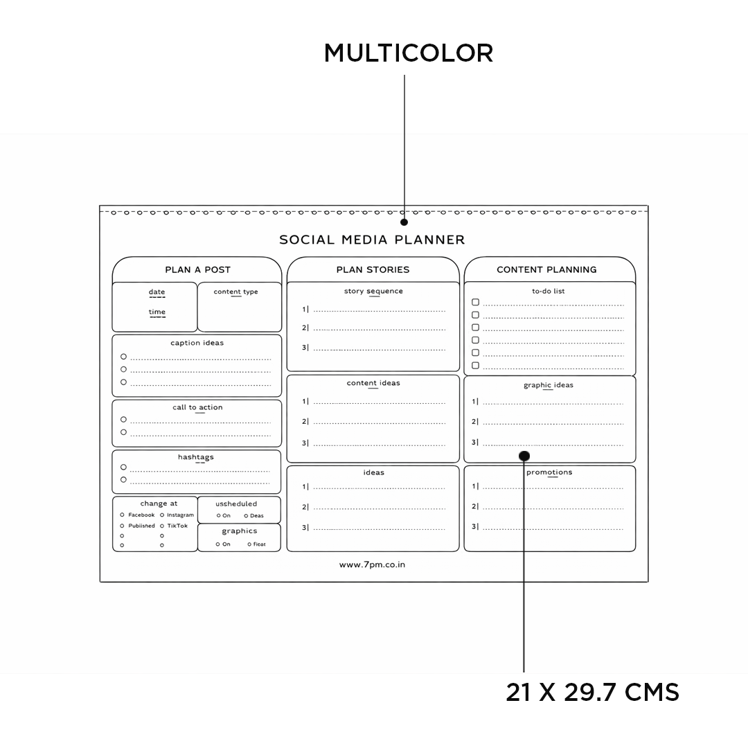 - This social media planner requires you to plan and keep track of each and every detail from graphics to posts to stories.