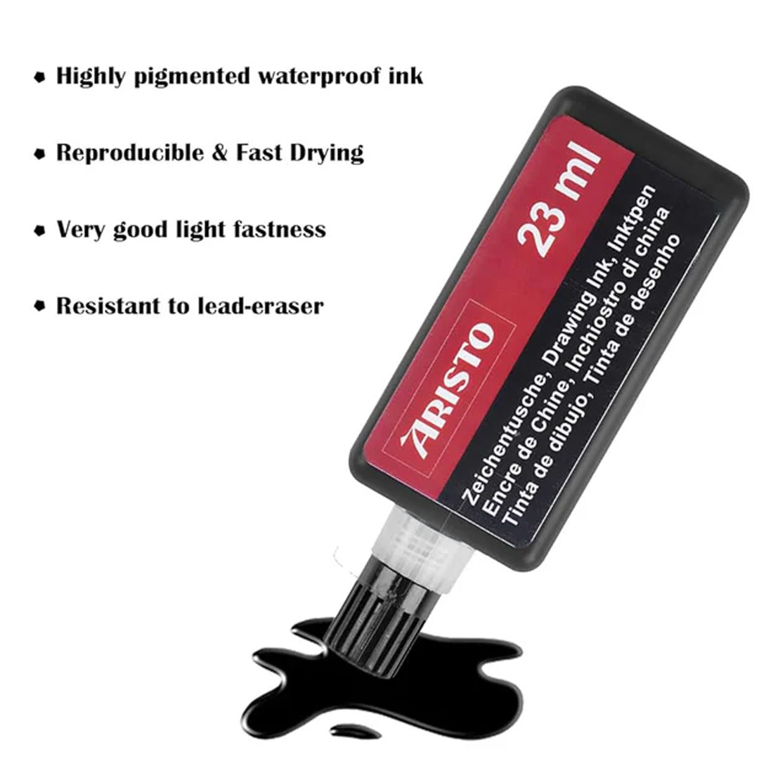 - The Aristo 23 ml Drawing Ink is a premium-quality ink formulated for precise and professional drawing applications.