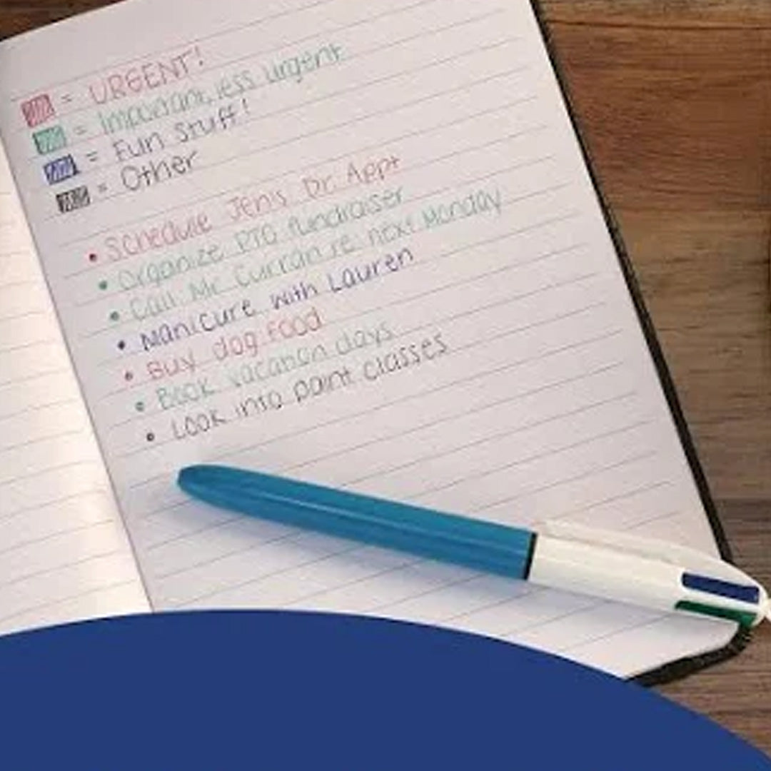 - Experience convenience and efficiency with the bic 4 color ballpoint pen pro 1.0mm, designed to streamline your writing tasks with four essential ink colors in one pen.