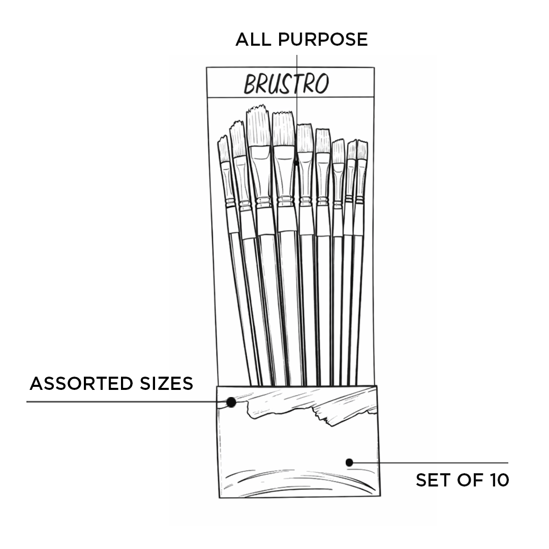 - The Brustro Short Handle, Gold Taklon White Bristle Brush Set is a versatile collection of 10 premium brushes, ideal for artists working with acrylic, oil, and watercolor mediums.