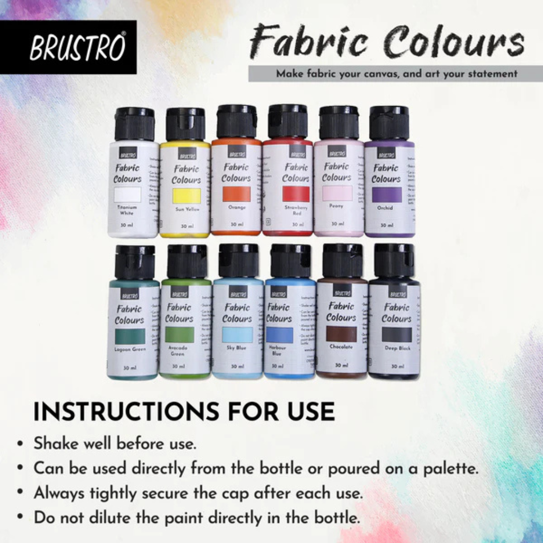 - Safe & Non-Toxic: Made with quality materials, Brustro Fabric Colours are safe for all creative projects. Suitable for beginners, students, and professional artists.
