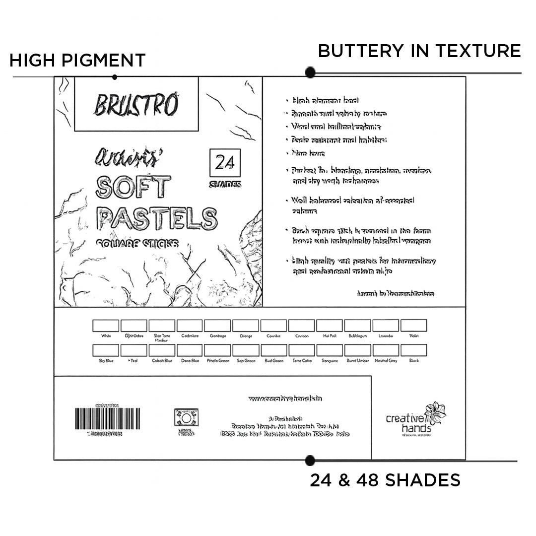 - Brustro Artists Soft Pastels come in a vibrant assorted colour range, offering rich pigmentation and a velvety smooth texture for effortless blending.