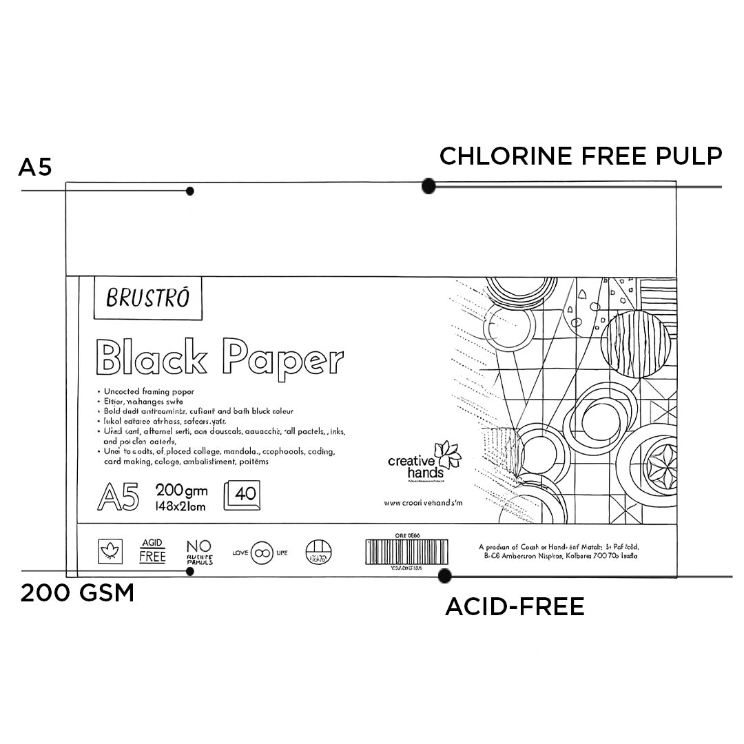 - Brustro Black Paper A5 Pad features 40 sheets of premium acid-free black paper, perfect for creating bold and striking artwork.