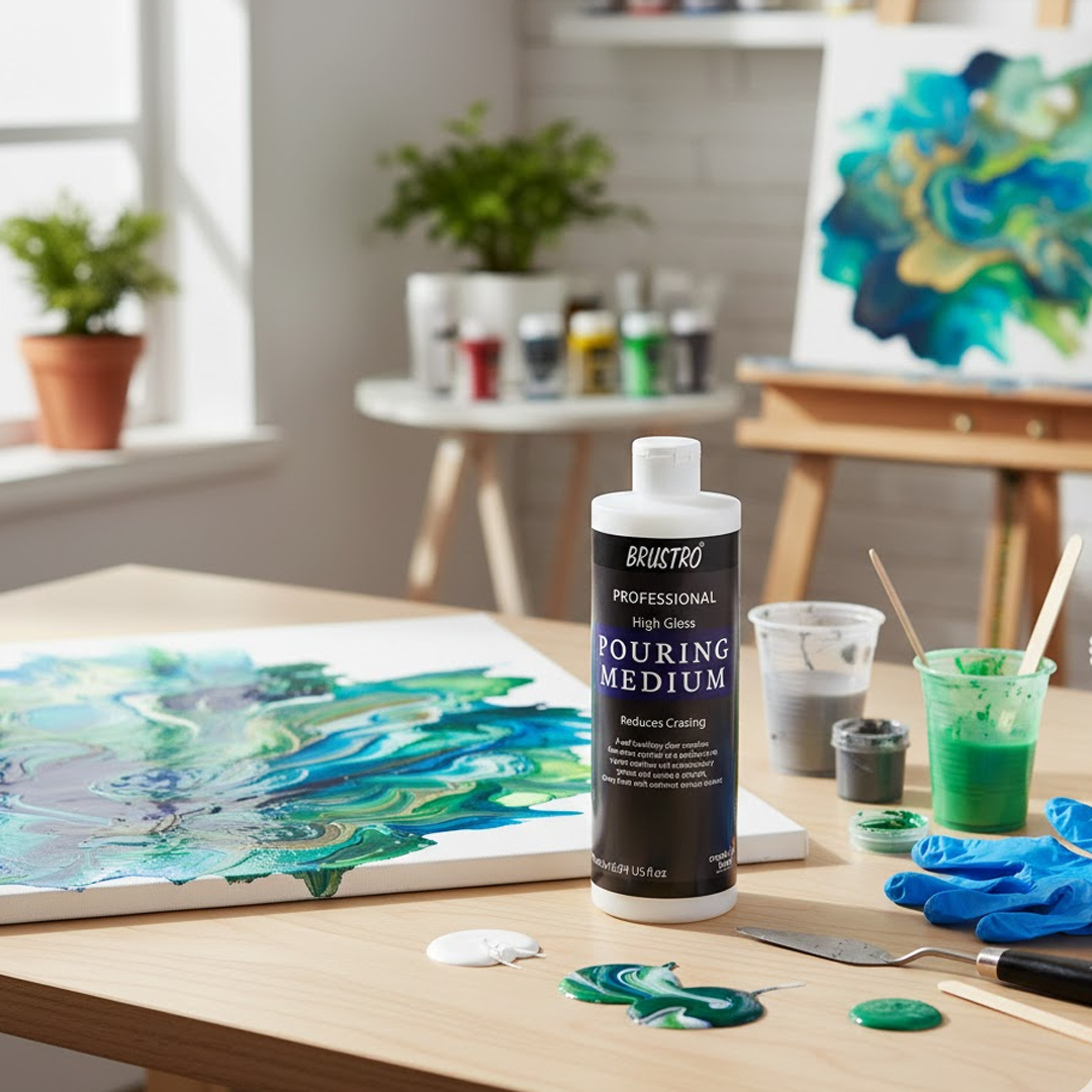 - Specially formulated for acrylic pouring techniques, this premium medium enhances the flow of colours, allowing them to glide smoothly across surfaces without cracking or crazing.