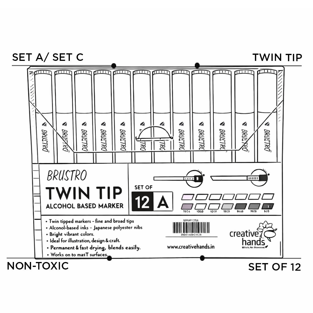 - The Brustro twin tip alcohol based basic marker set is designed for smooth, vibrant, and professional-quality coloring.