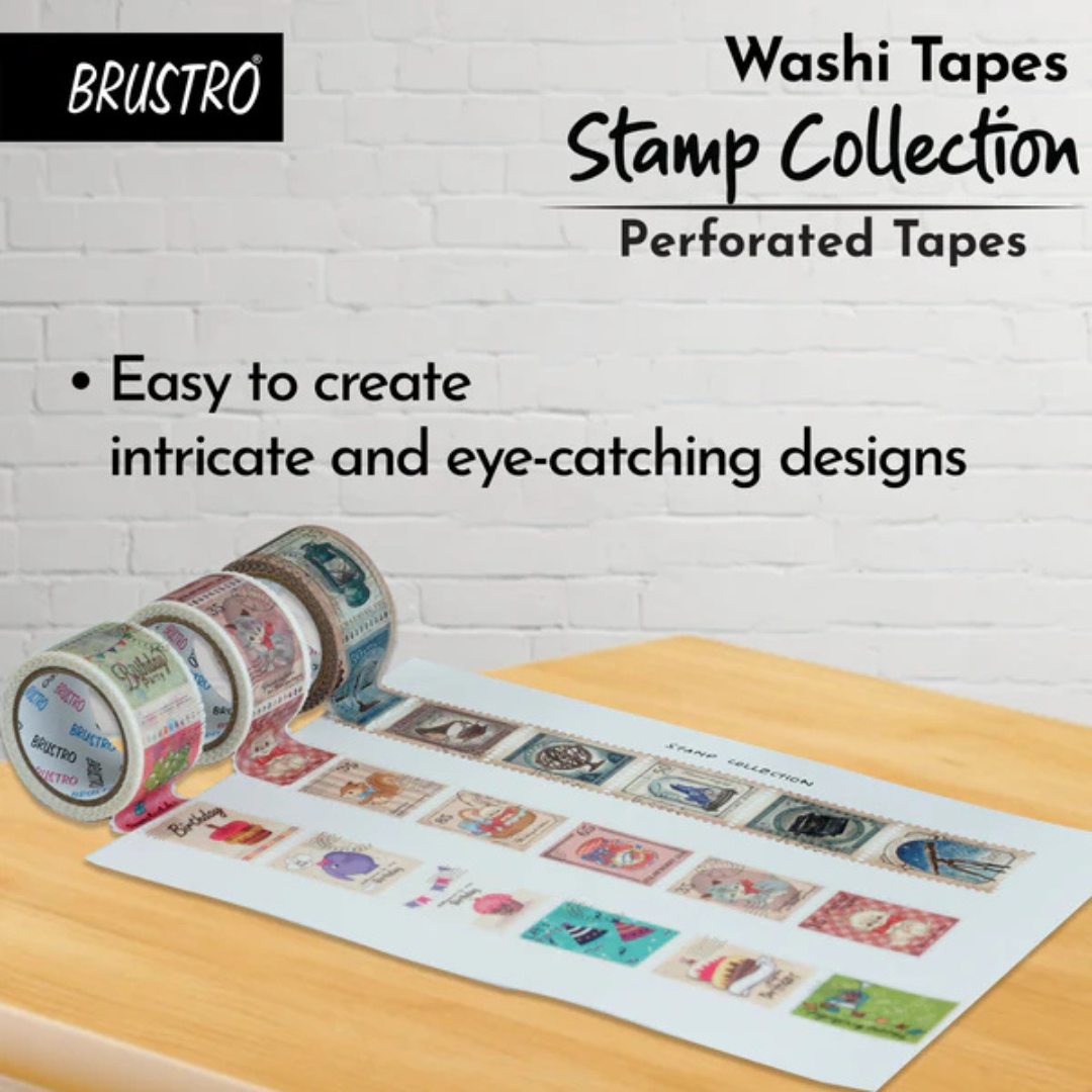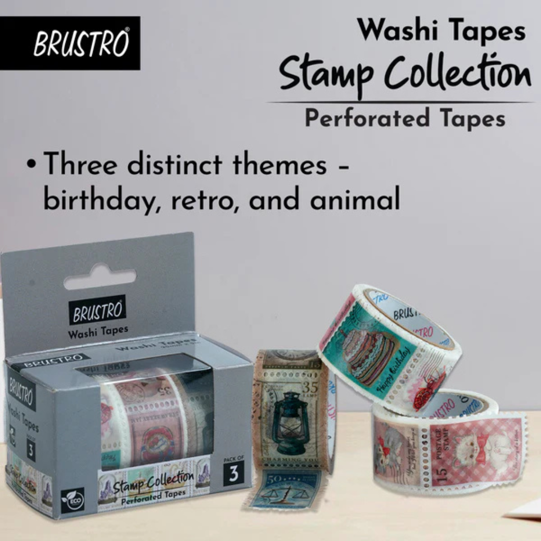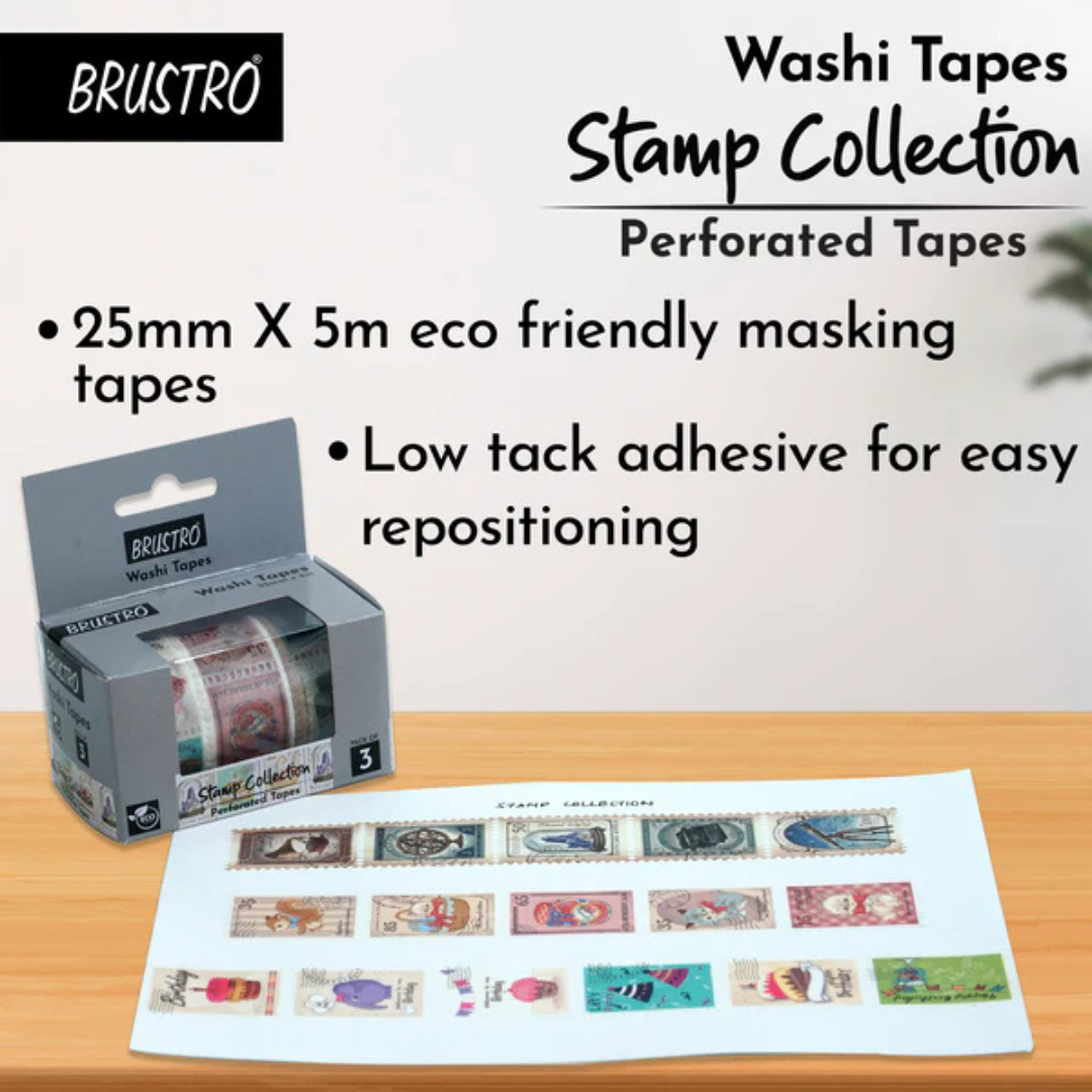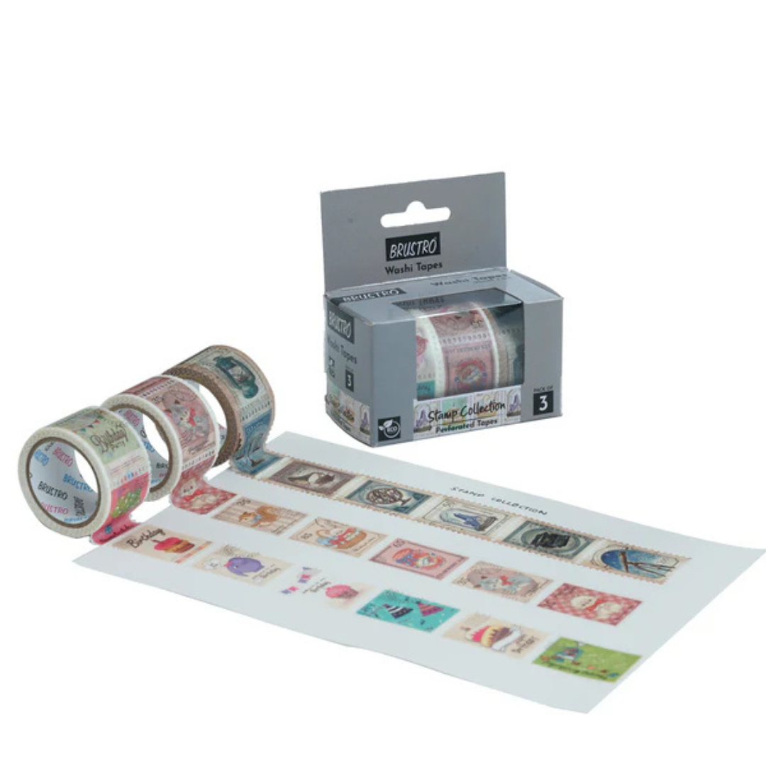 Brustro Washi Tapes Stamp Collection Shade, 25 mm x 5 mtrs (set of 3)