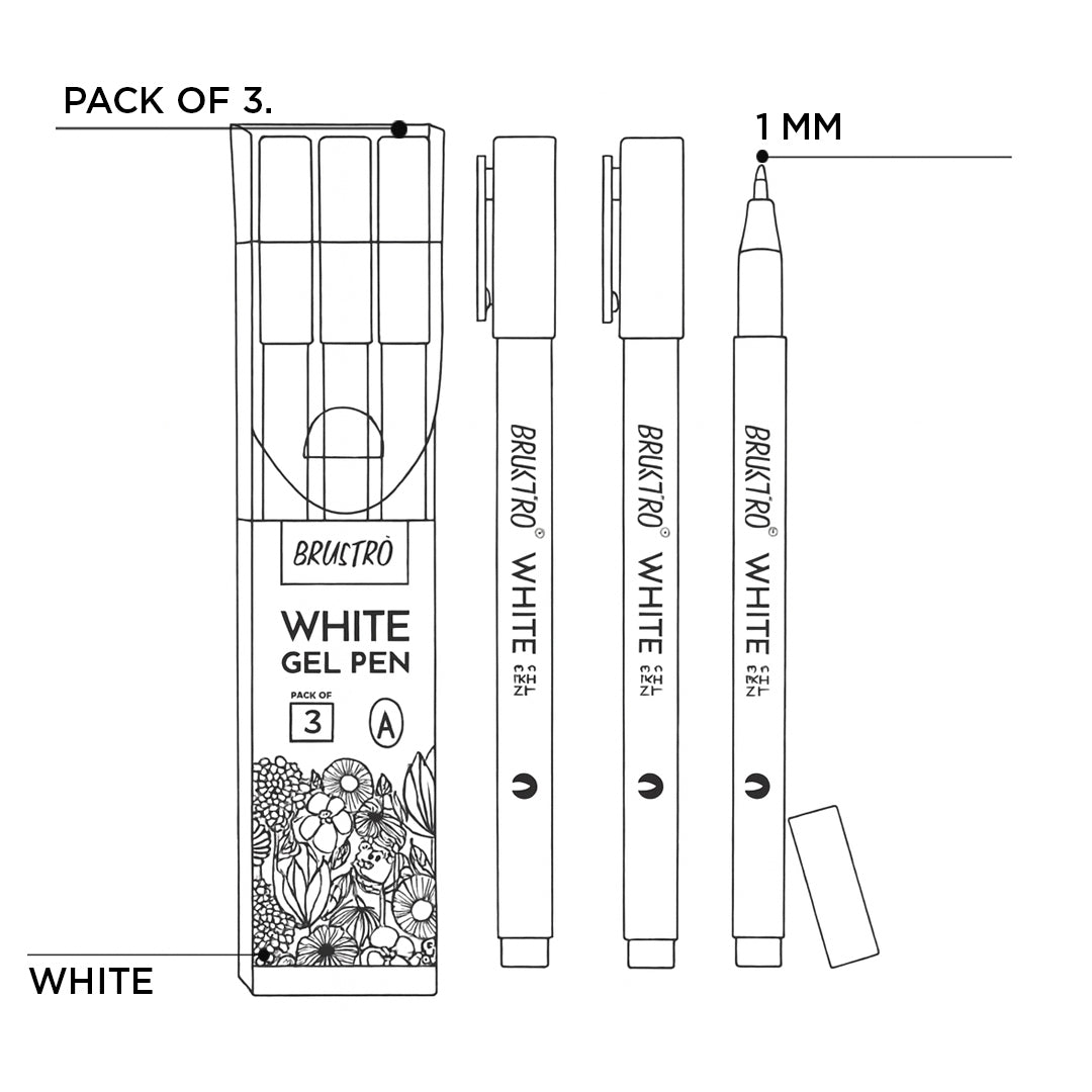 - The brustro white gel Pen is specially designed for smooth, bold, and precise writing on dark and colored surfaces.