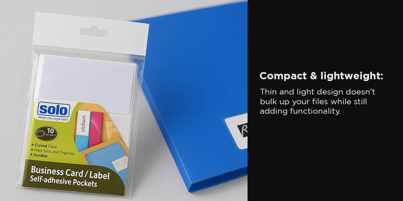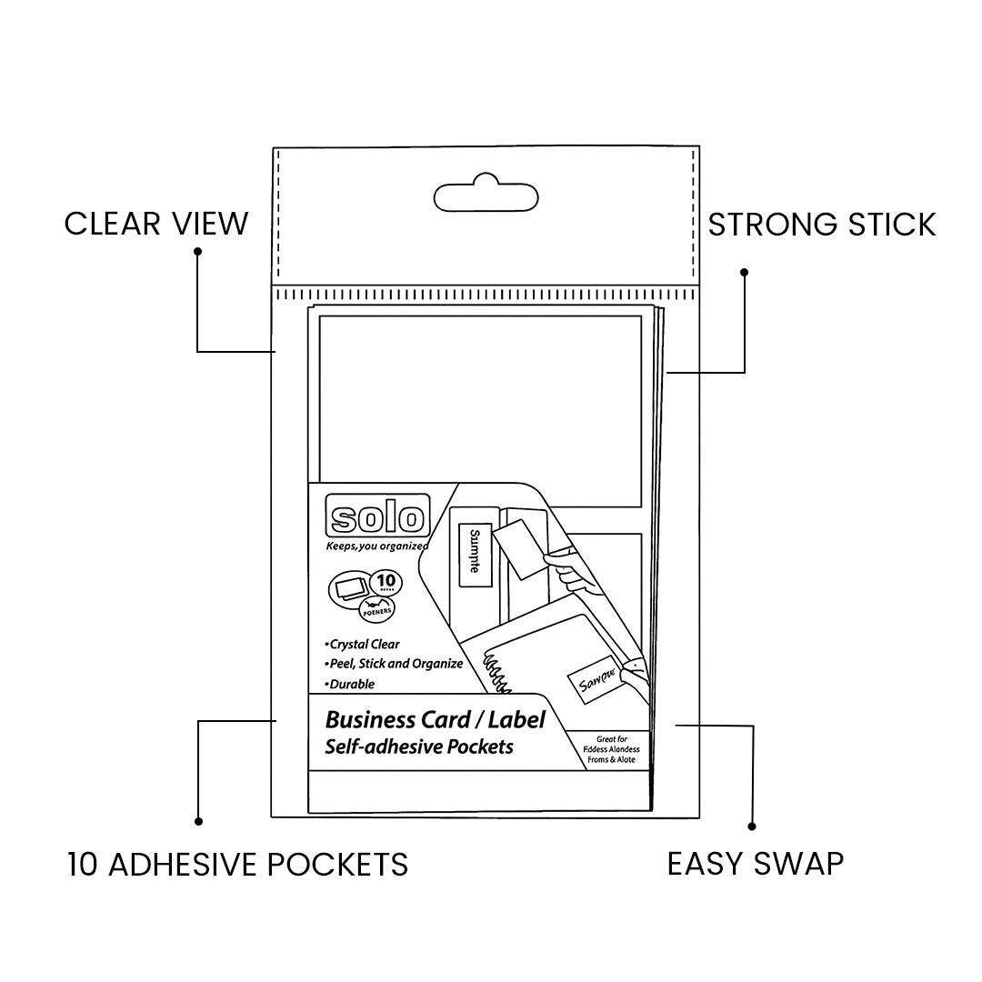 - Solo Business Card/Label Self-Adhesive Pockets are a smart and convenient way to store and display business cards, labels, or small notes.