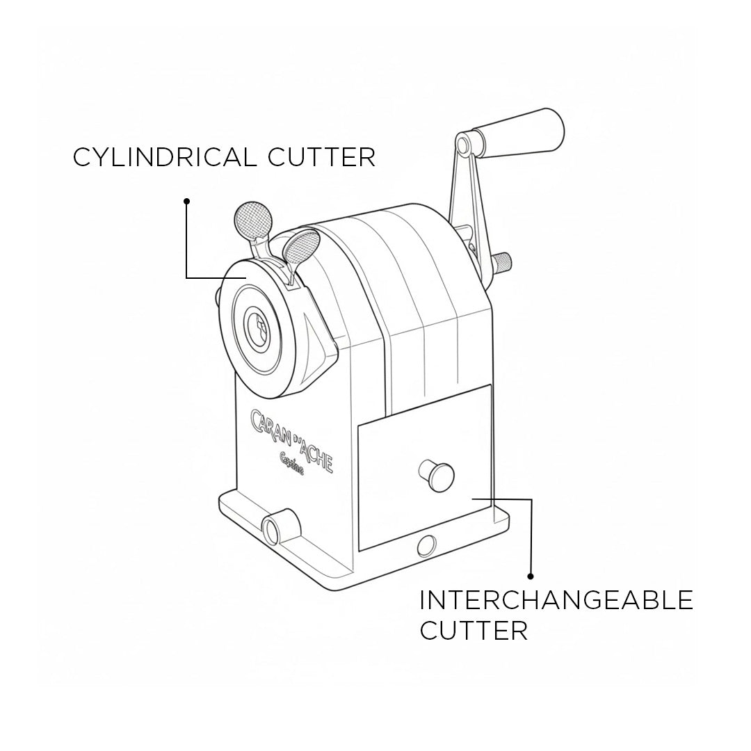 - For round and hexagonal pastels and pencils with Ø between 4 and 10 mm, and possibility of adjusting the type of tip