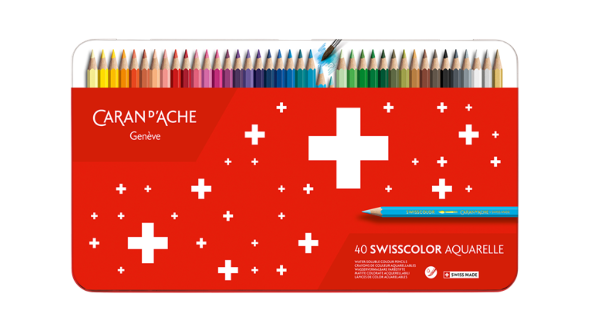 Caran D'Ache Swisscolor Water Colour Pencil Swiss Flag 40 Shades Metal Pack