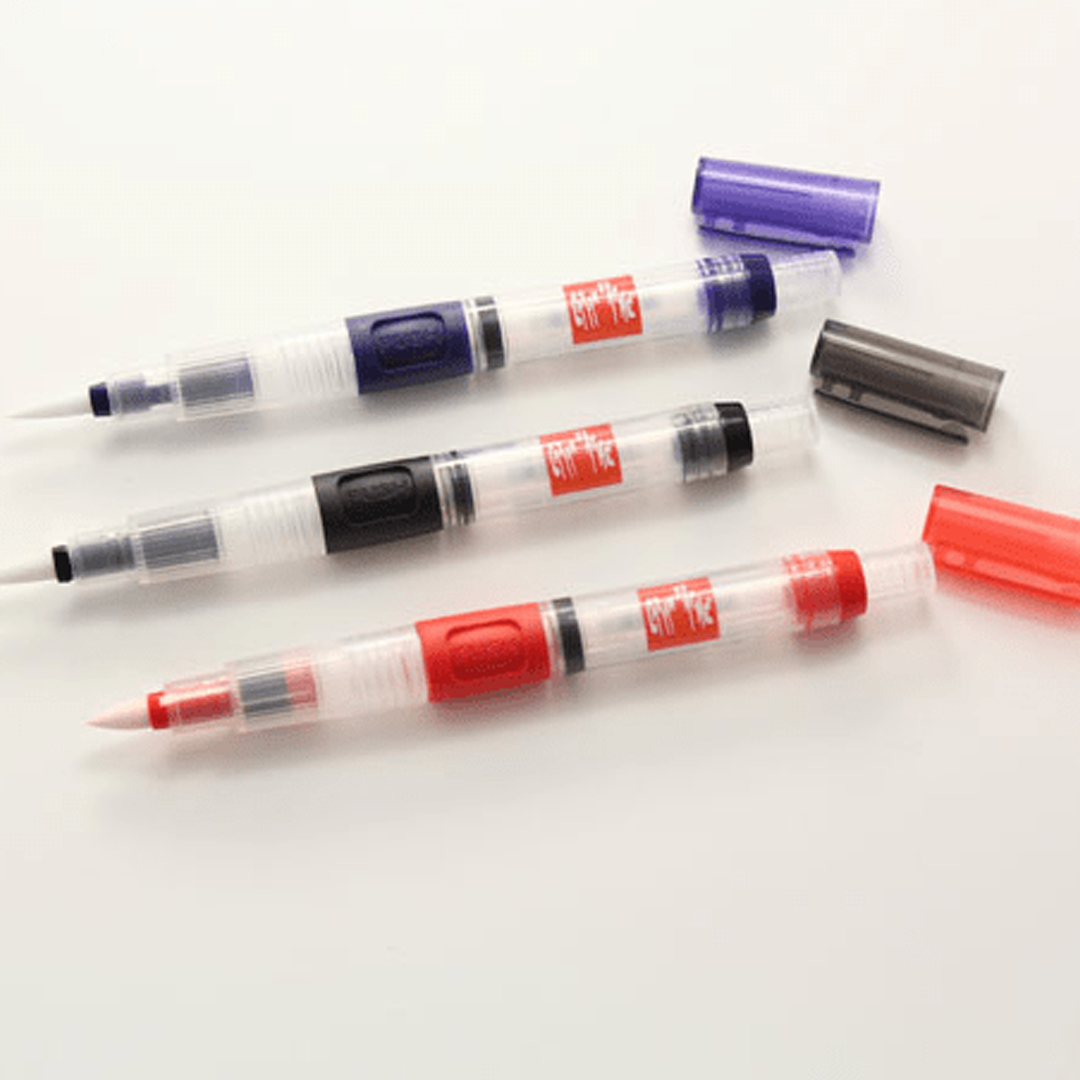 - The three types of tip (large, medium and fibre) provide a full range of tools to explore all water-based techniques (watercolour, gouache, pastel).