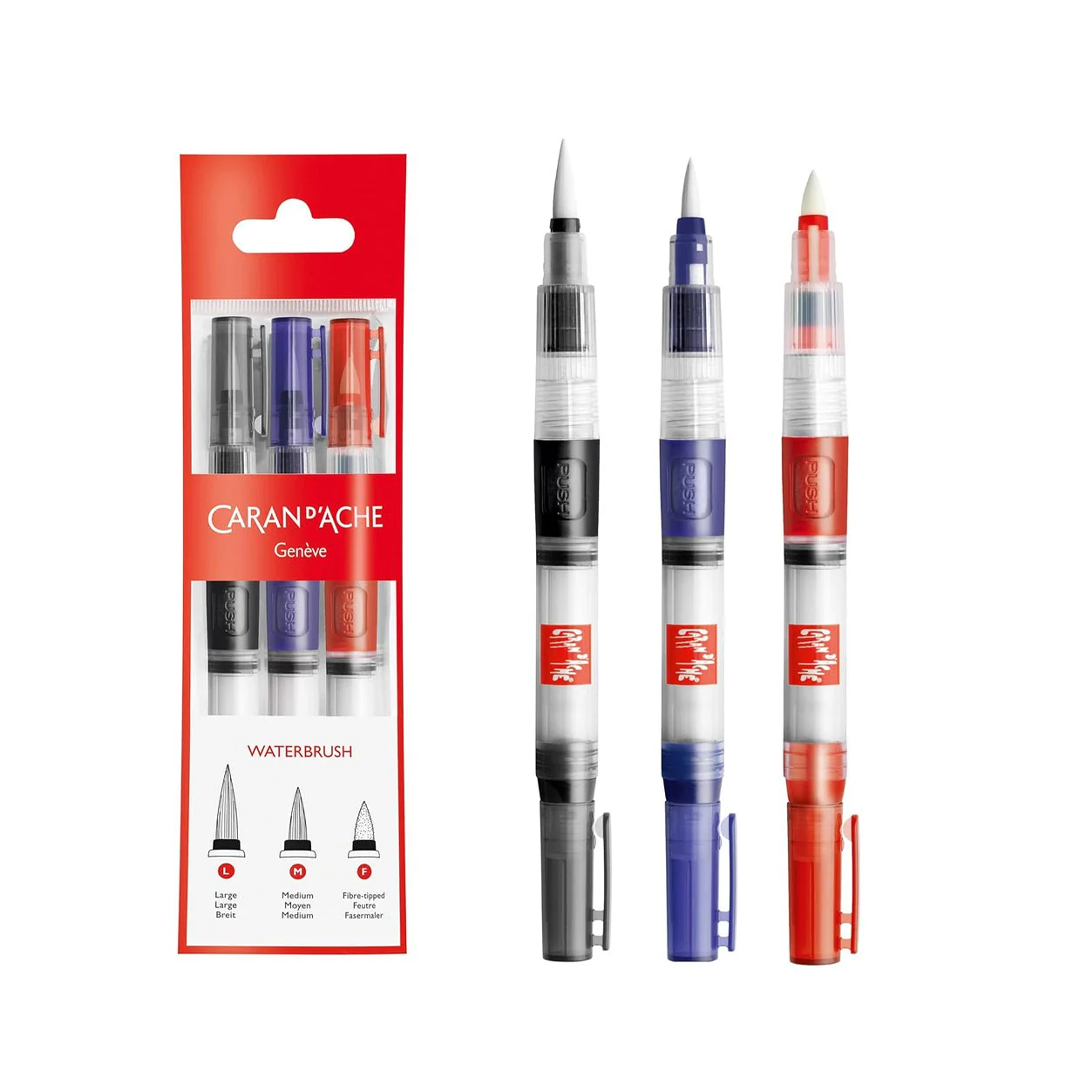 - Caran d’Ache water brushes are now available in a convenient set for those who want to discover watercolour techniques in an easy way.