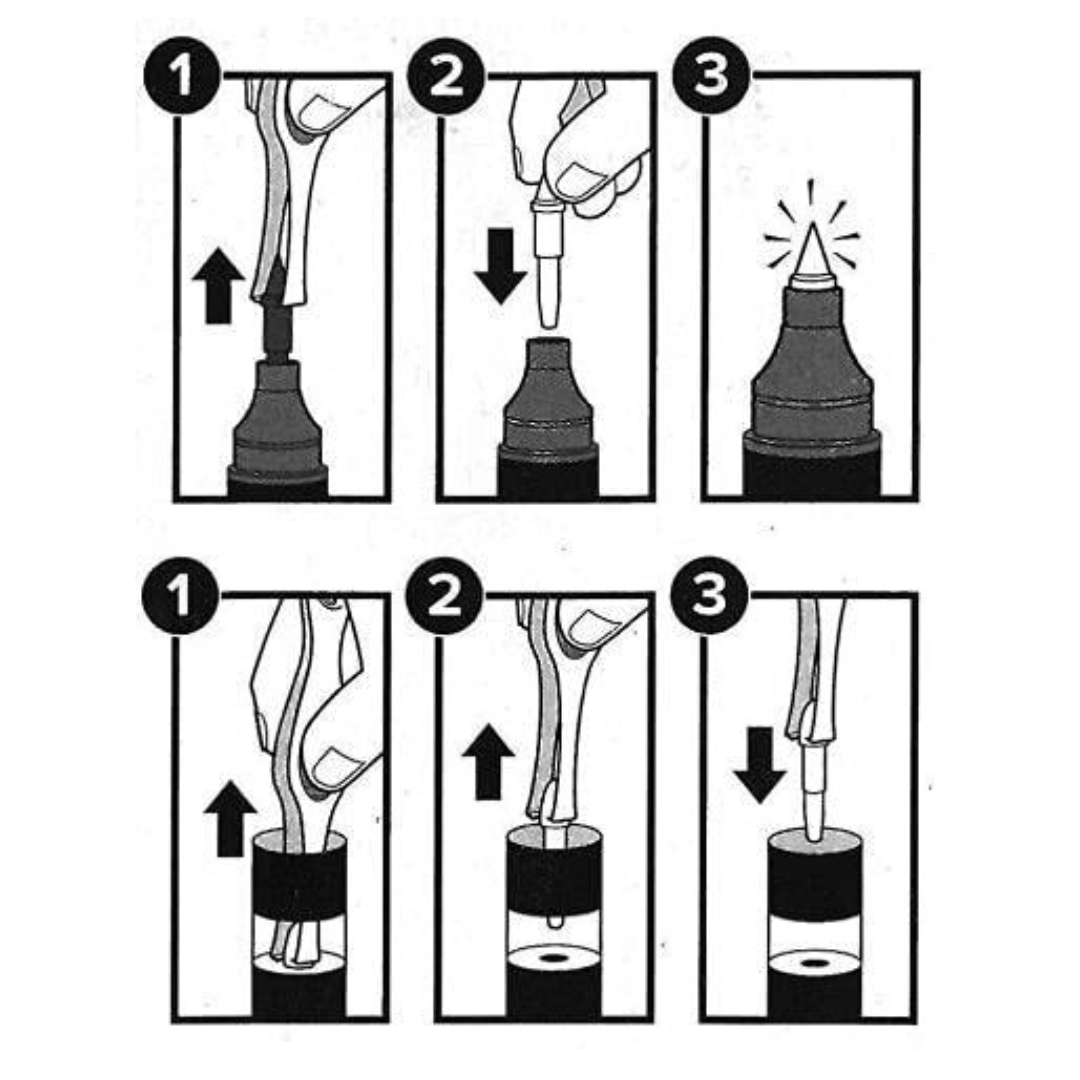- Useful and essential to avoid touching the tip with bare fingers when refilling the ink of a marker.