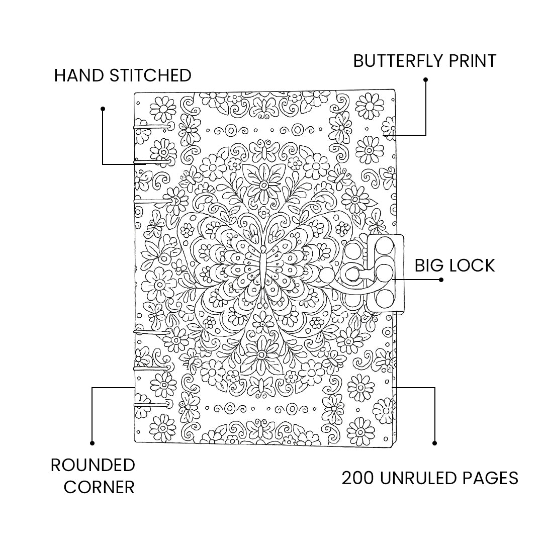 - Designed with a stunning serigraphy butterfly motif on the cover, this journal captures creativity and sophistication in every detail.