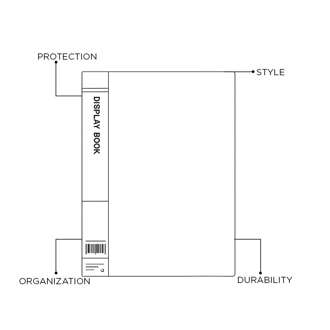 - The display book features clear, transparent inner sleeves that securely hold documents while allowing easy viewing without removal.