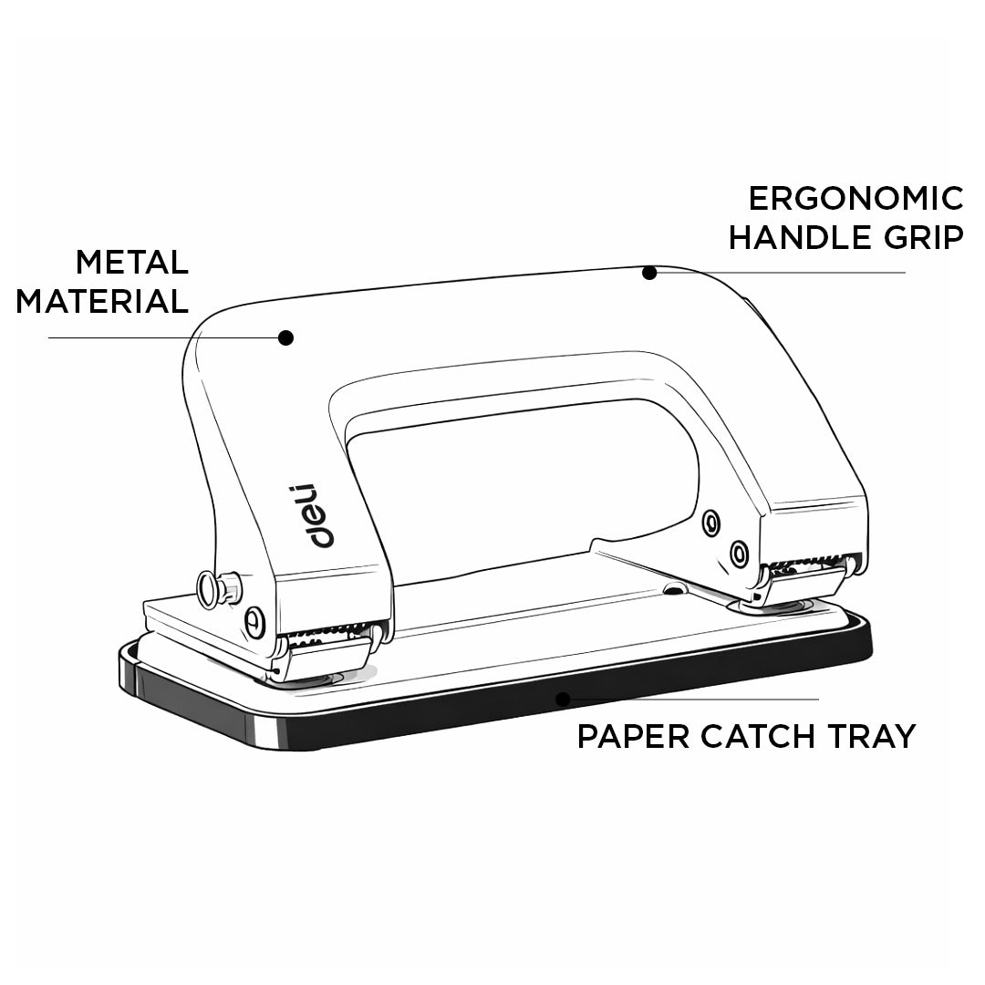 - It features a front opening chip tray that allows easy removal of punched paper waste, keeping your workspace clean and organized.