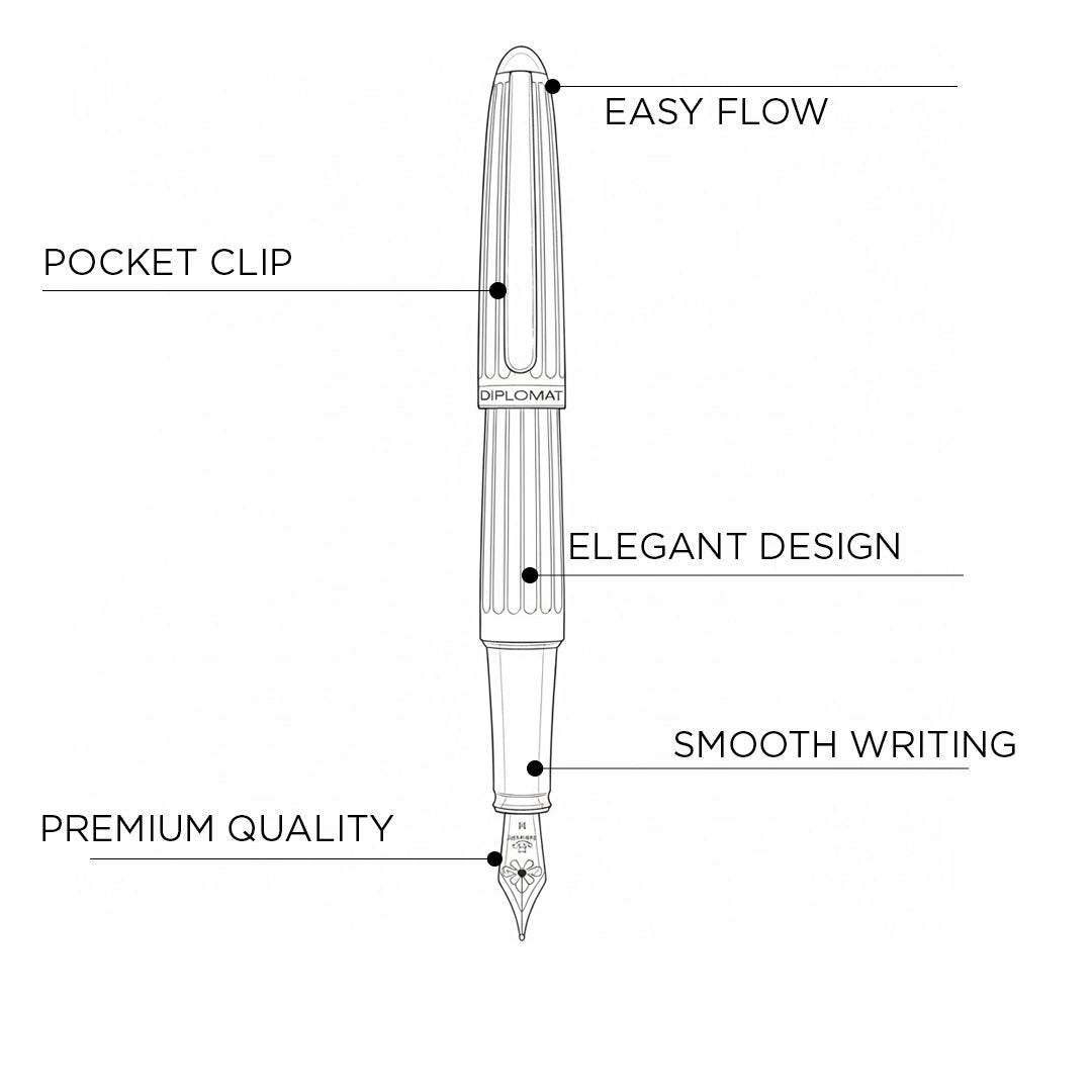 - The Diplomat Aero Fountain Pen is inspired by the elegance and engineering of classic airships.