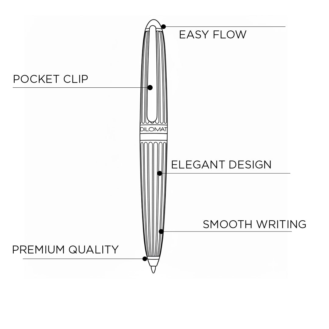 - The Diplomat Aero is characterized by groove-like depressions on the barrel and cap which lends the pen next to its classic form a modern spirit.