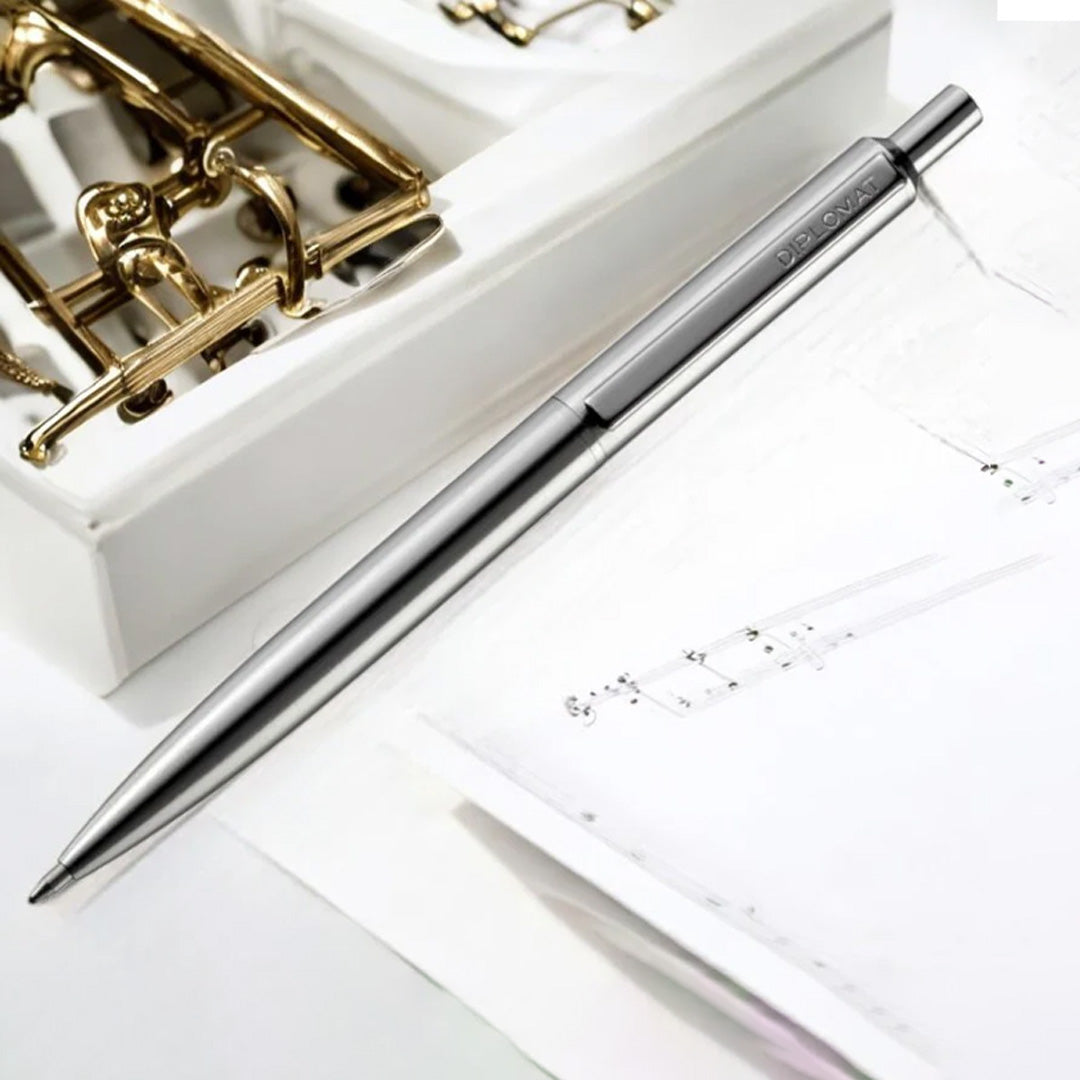 - Diplomat Equipment Mechanical Pencil Stainless Steel comes packed in a nice Diplomat Gift Box.