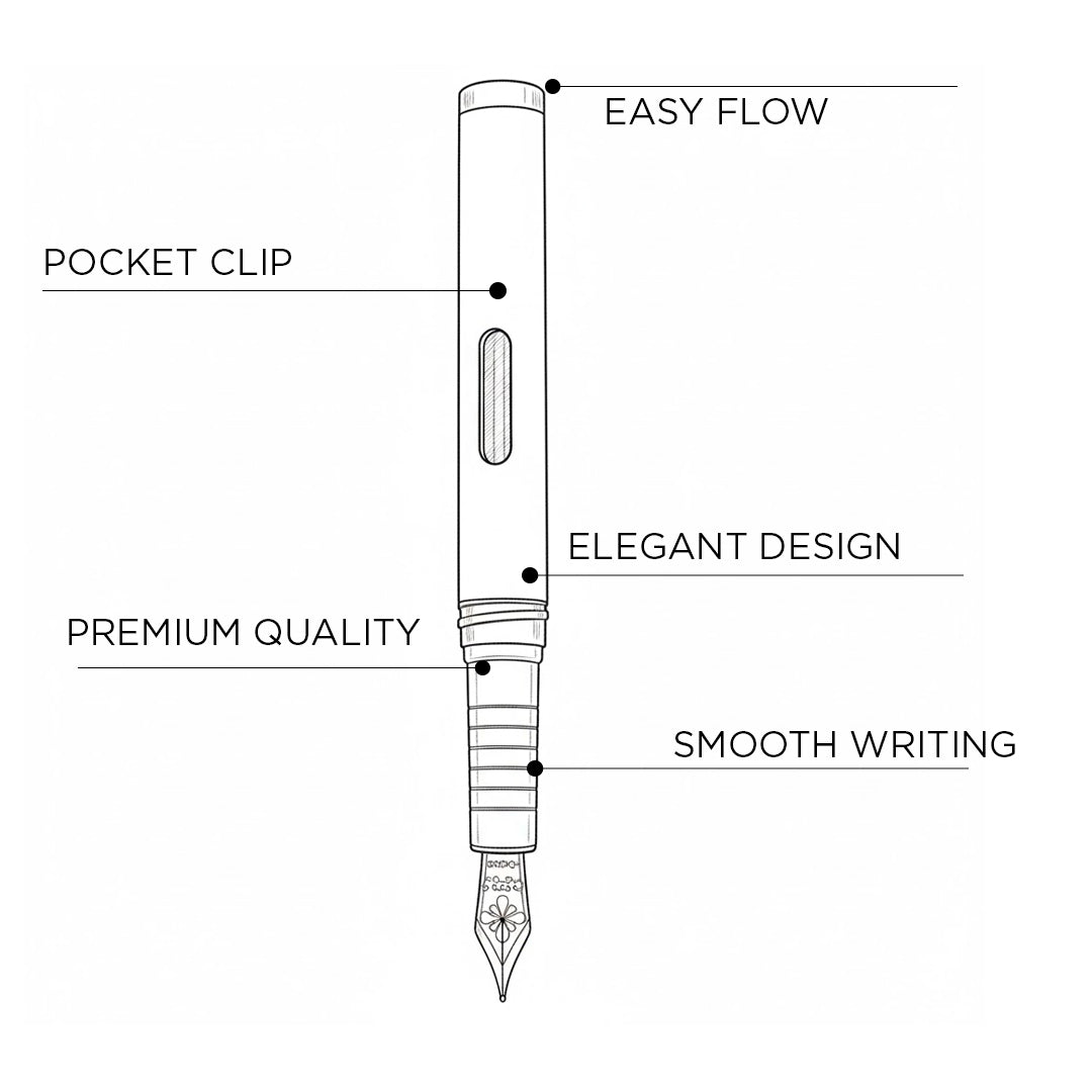 - No more risk of ink leaking into your cap when not in use! A bottle of black Diplomat ink is included.