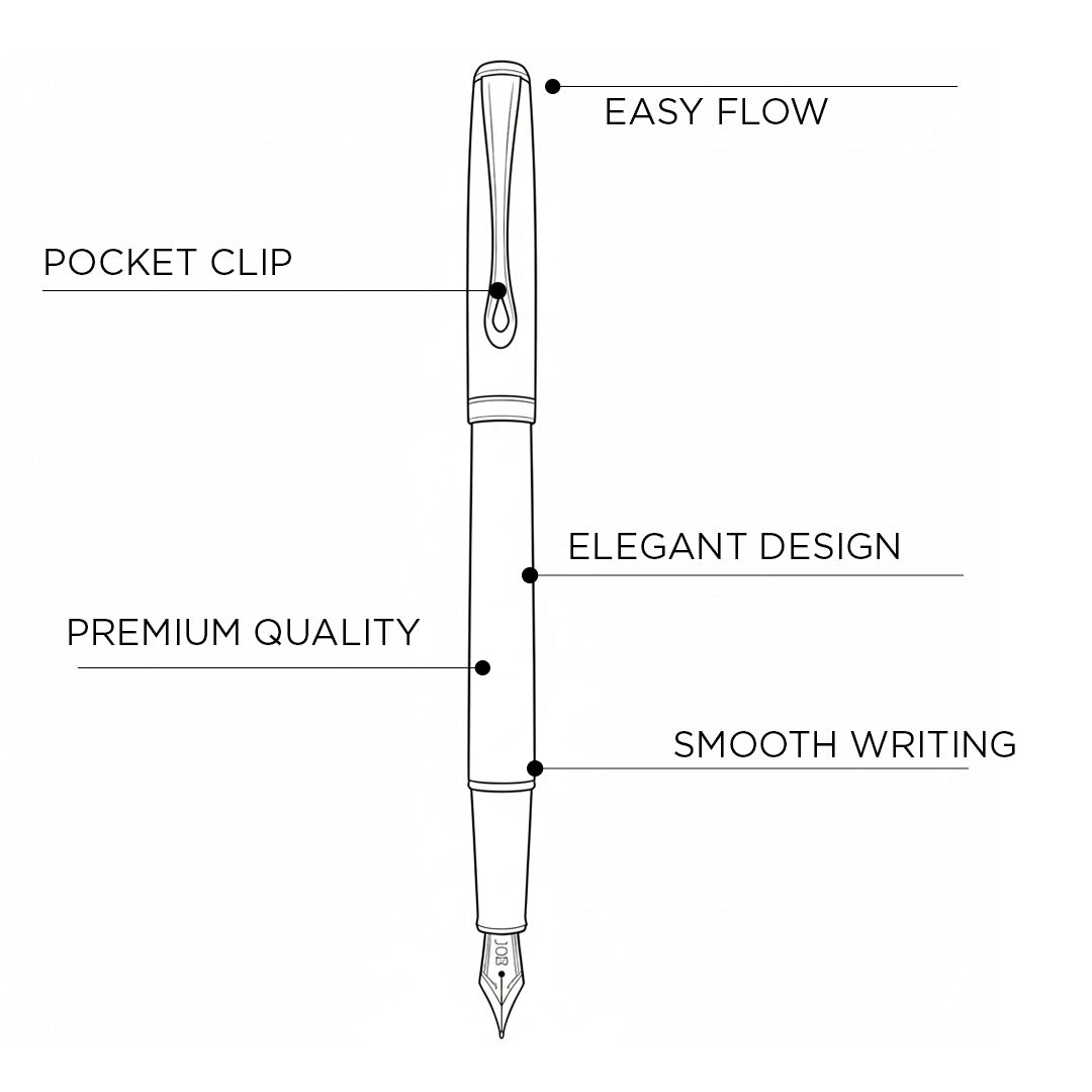 - The narrow barrel and comfortable grip ensure effortless control, while the stainless steel nib delivers a consistent and fluid ink flow.