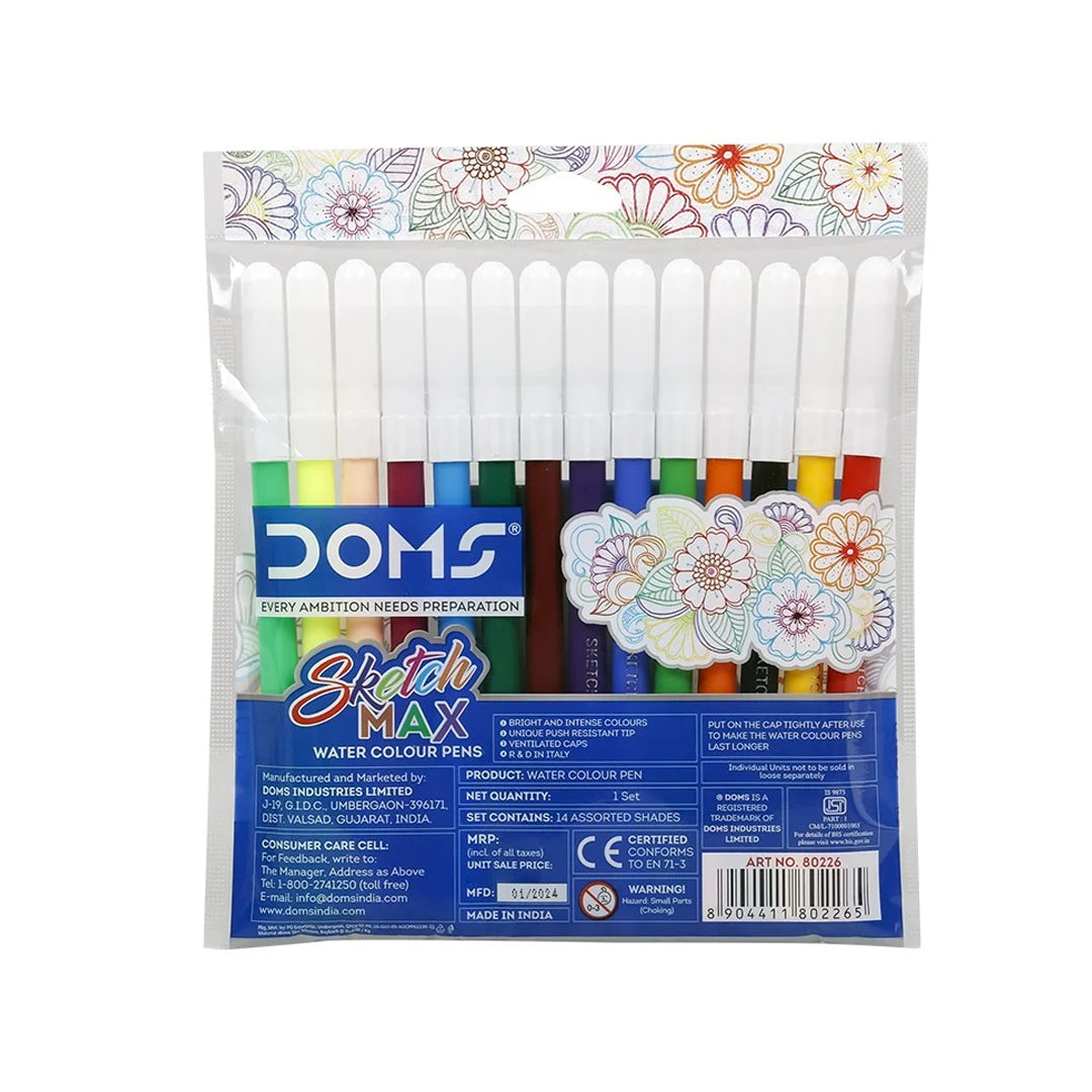 DOMS Sketch Max Non-Toxic Water Colour Sketch Pens-Pack of 14