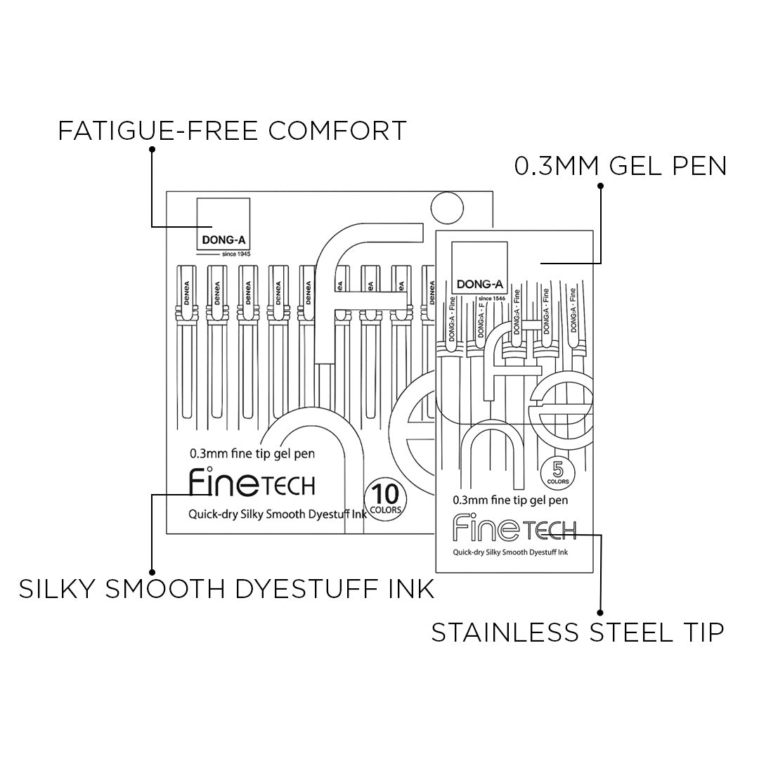 - Discover precision and smoothness with the dong-a fine tech 0.3mm gel pen set, crafted for those who value fine detailing and clean writing.