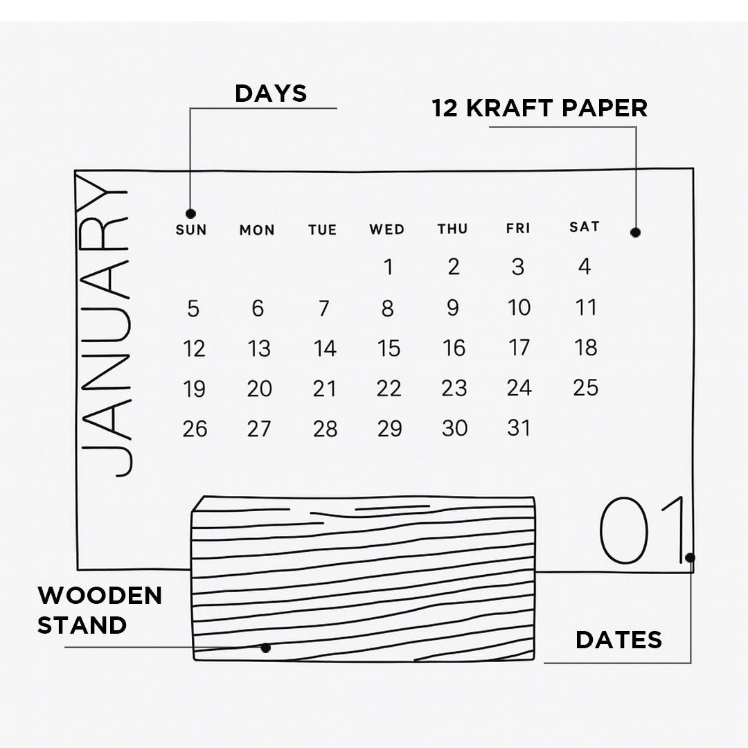 - The calendar comes with a sturdy bamboo wood stand, providing a natural, minimalist look that sits stylishly on desks, counters, or study tables.