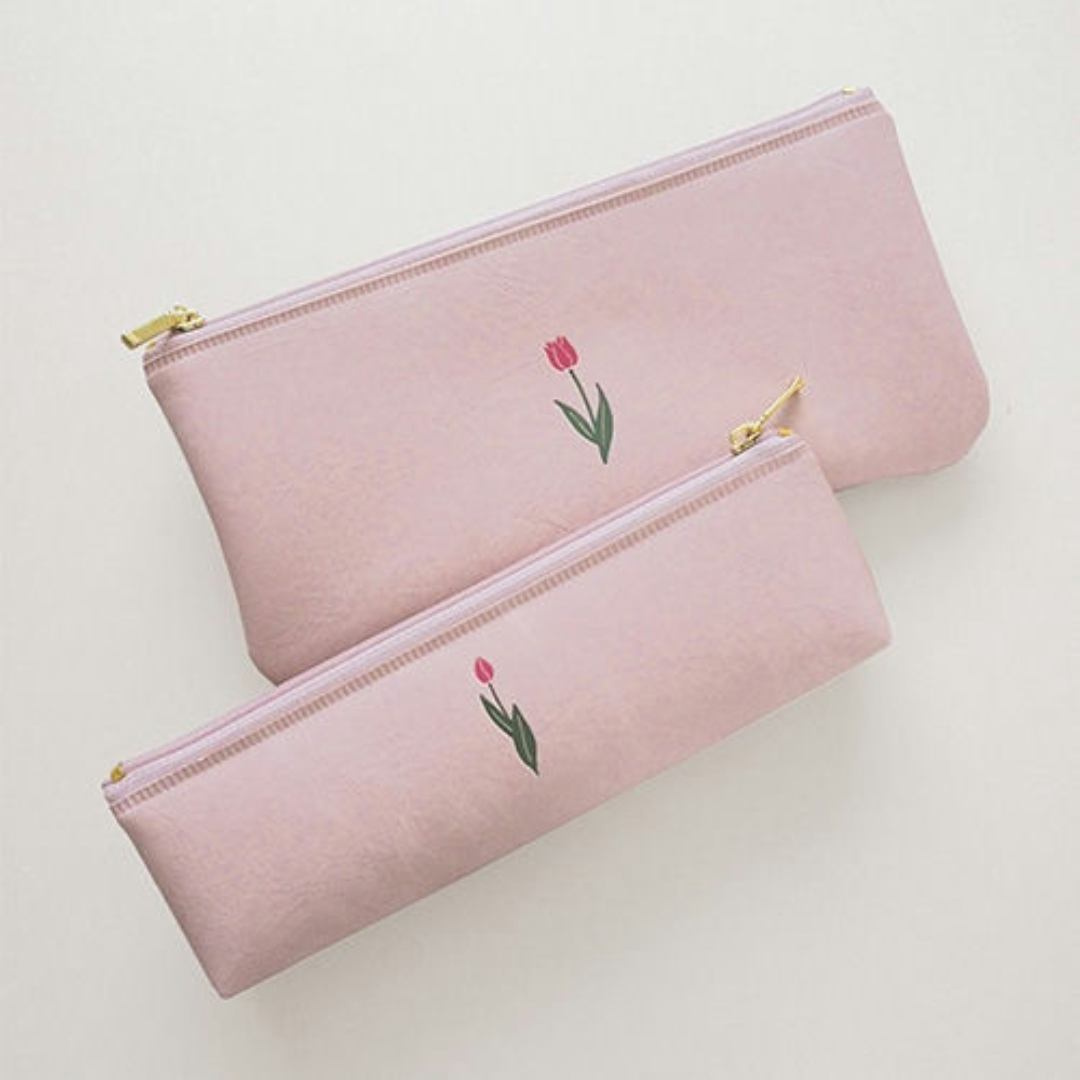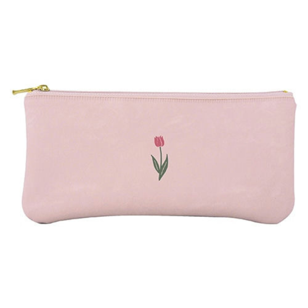 - A large flat-type pen case with popular flowers in two-color foil stamping on both sides.