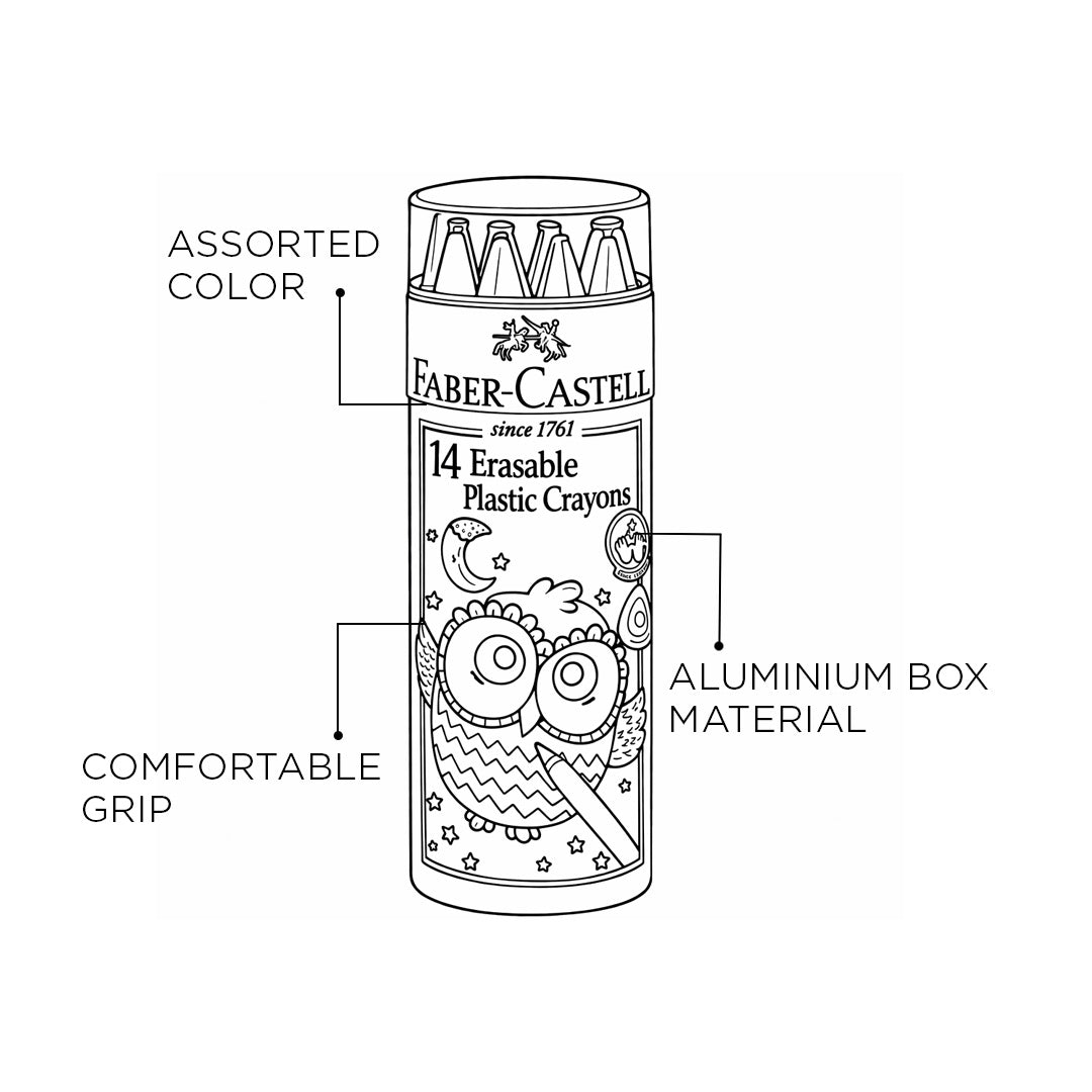 - The Faber-Castell Erasable Crayons are designed to make coloring fun, smooth, and convenient for young artists.