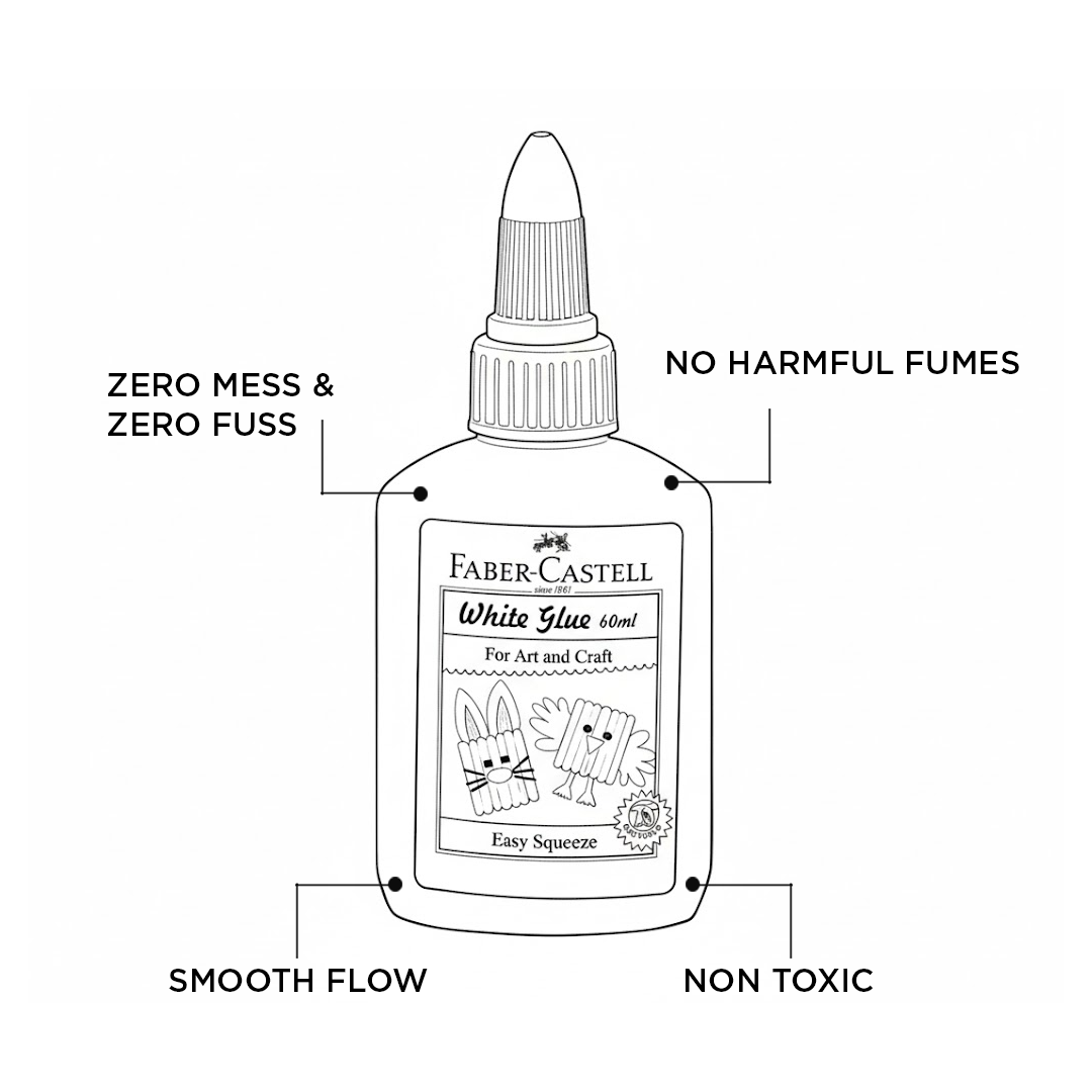 - Perfect for creative projects, Faber-Castell White Glue makes crafting simple, safe, and enjoyable for kids and adults alike.