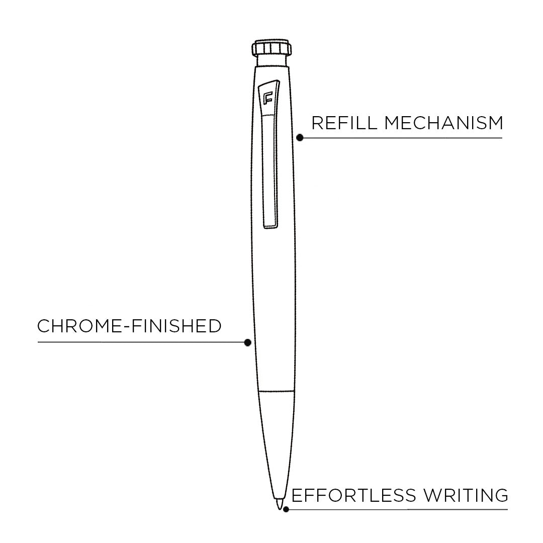 - The festina chronobike classic chrome ballpoint Pen embodies elegance and precision inspired by the world of cycling.