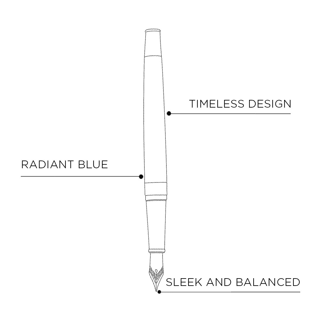 - Featuring a sleek blue brass body accented with polished chrome details, this pen offers a refined and professional look.