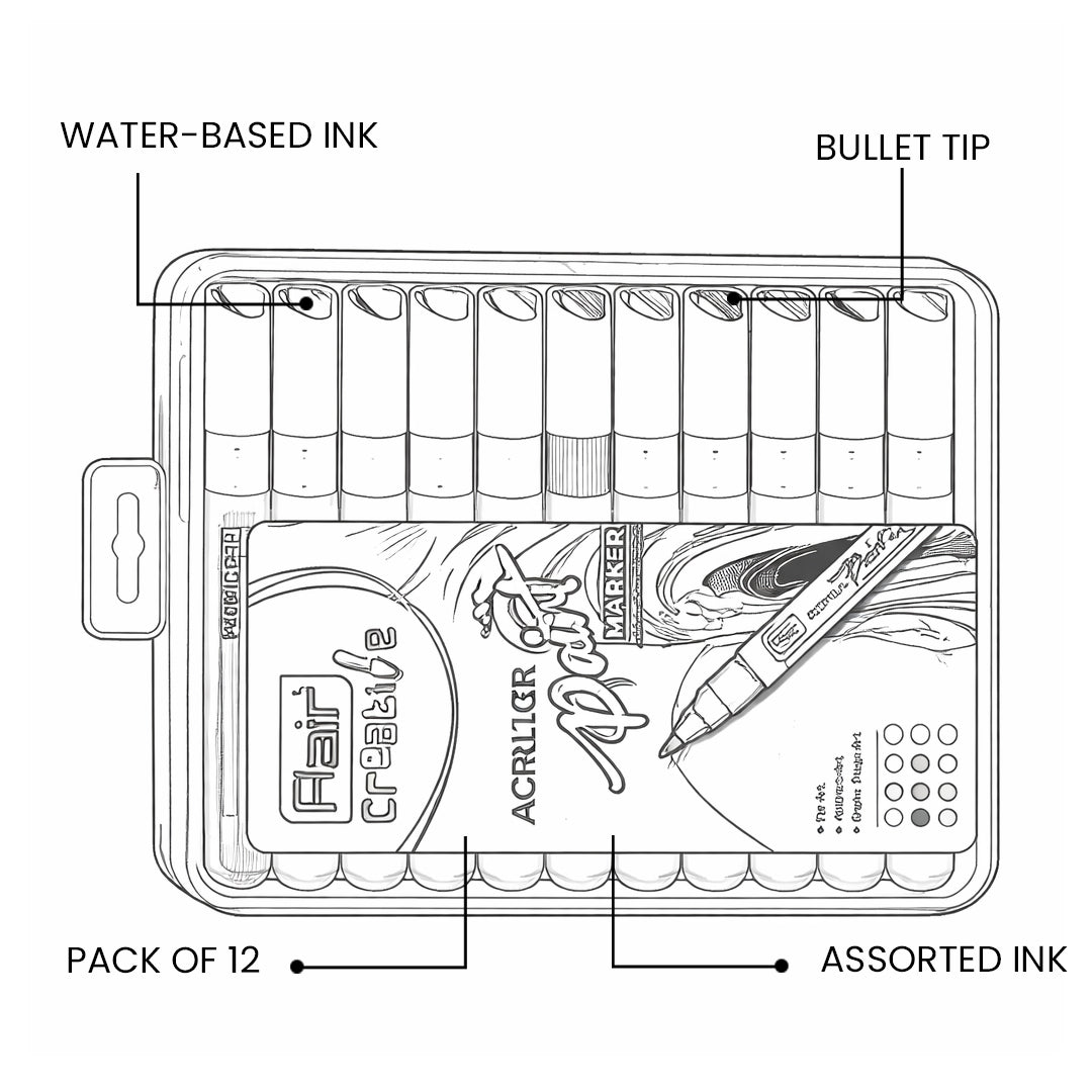 - Easy to use and comfortable to hold, the flair acrylic paint marker set is ideal for drawing, lettering, crafts, and creative artwork.