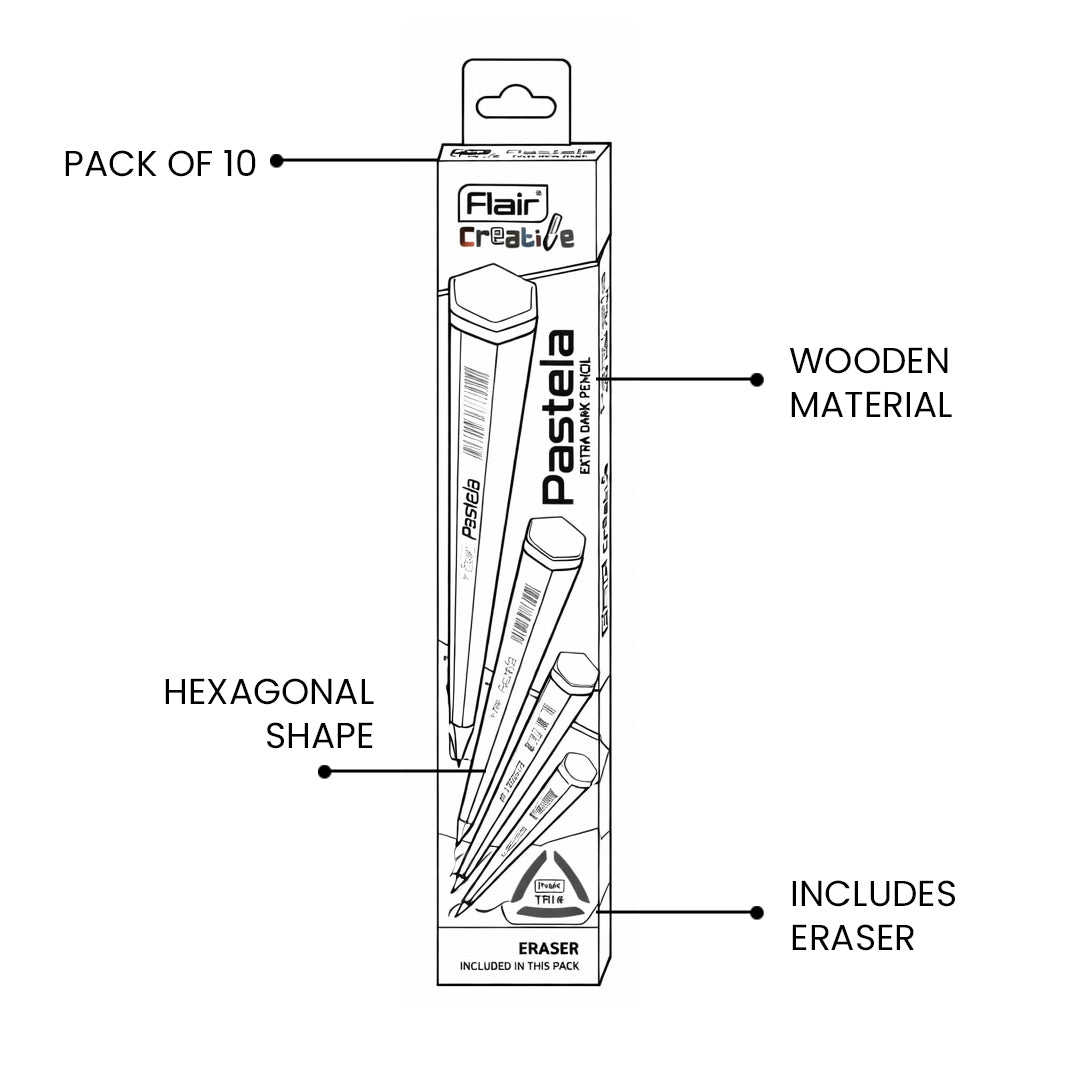 - Flair Creative Series Pastela Pencil Set comes with a free dust-free Tri Eraser inside, making it a perfect choice for clean and neat writing.