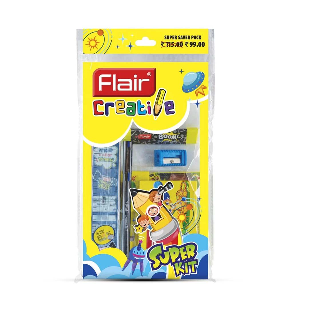 - The Flair Creative Super Kit is a complete art and stationery set designed to spark creativity, imagination, and learning in children.