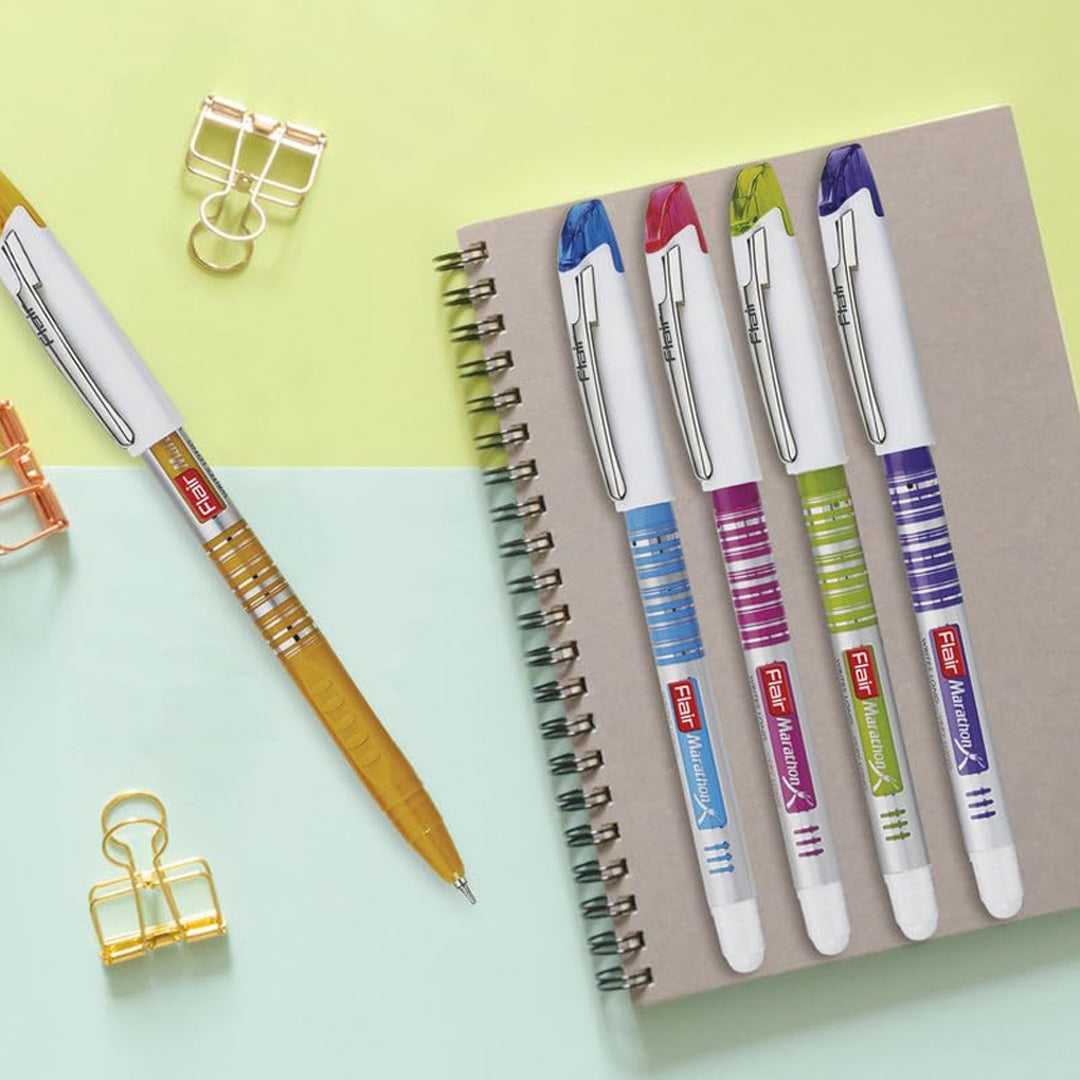 - The Flair Marathon Ball Pen is designed for reliable, everyday writing with a focus on comfort and durability.