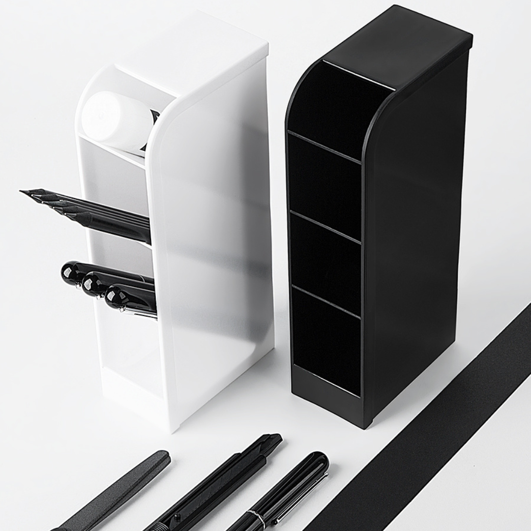 - Vertical oblique insertion pen holder, saving space, light and practical.The clean lines collide with the rounded shell to create your neat desktop.