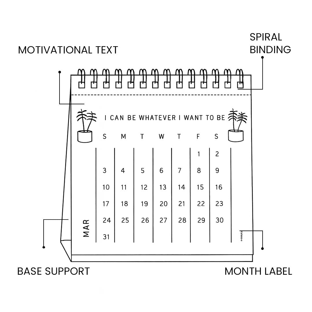 - More than just a date tracker, this calendar is designed to inspire positivity with uplifting affirmations for each day or month.