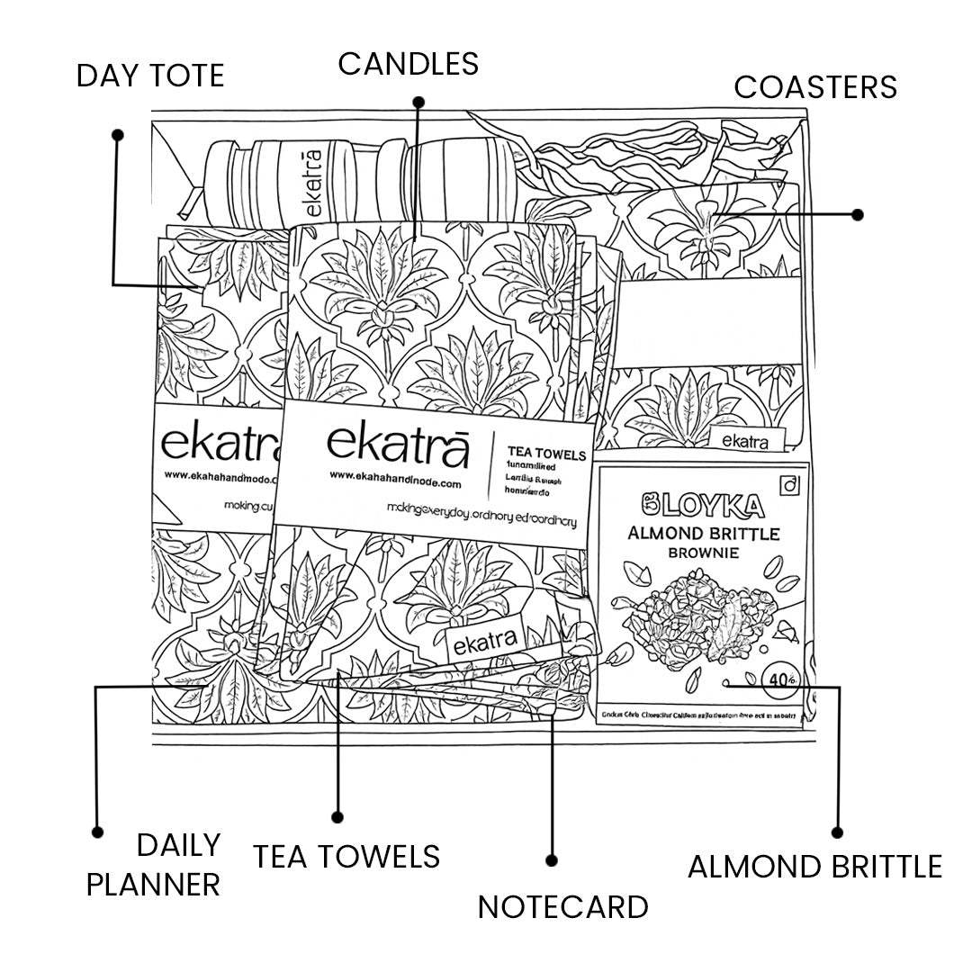 - Each piece in this hamper is lovingly handcrafted, reflecting ekatra’s signature blend of traditional artistry and modern functionality.