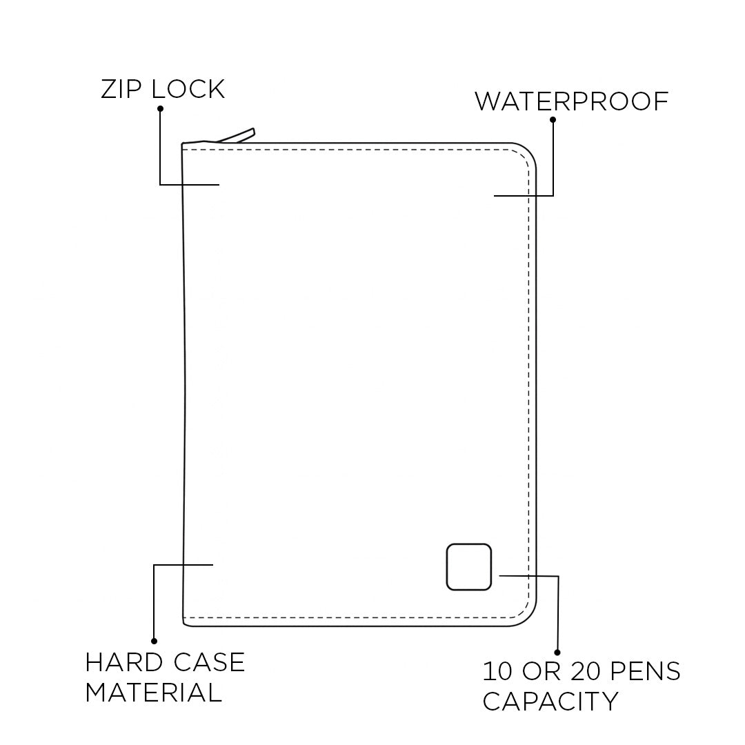 - A built-in cloth towel between the two sides prevents any damage to your writing instruments when the case is closed.