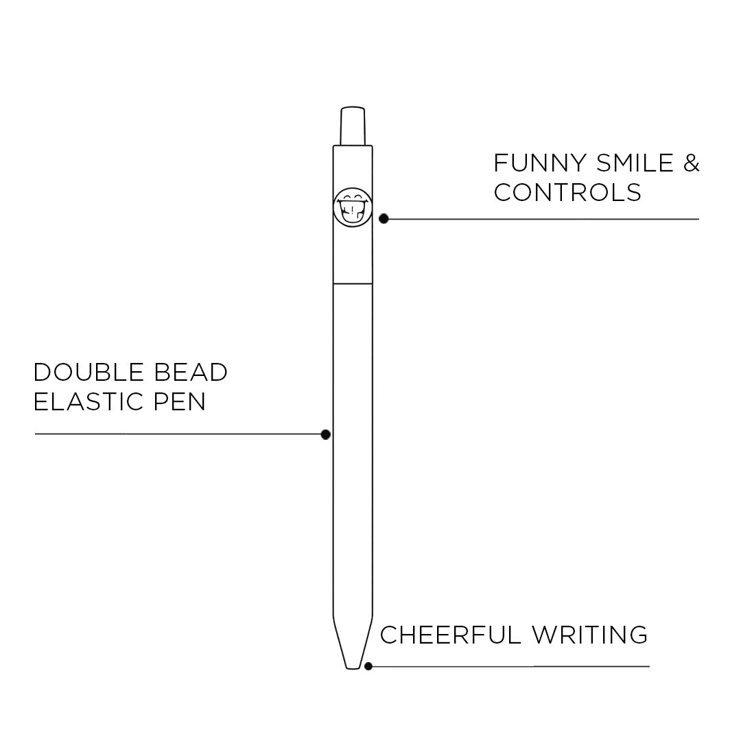 - The pen comes with a funny smile and controls the cheerful writing mode.