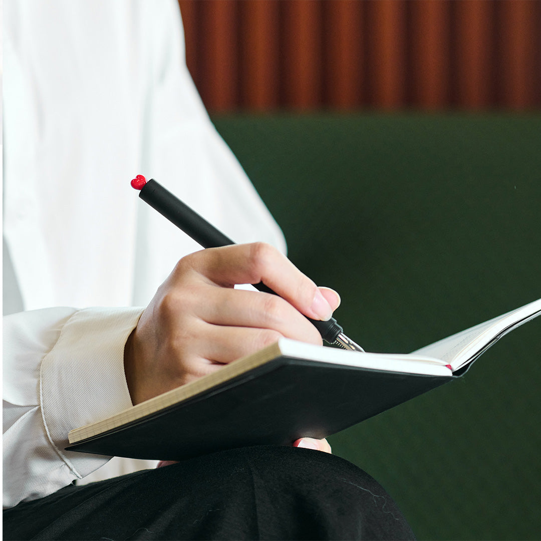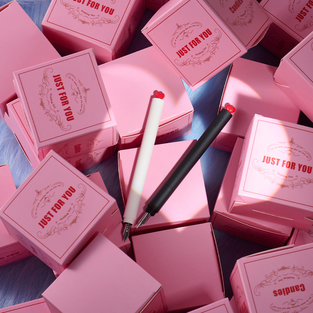 - Ingenious construction allows for easy reverse insertion of the cap, revealing a red "heart" on the pen tip.