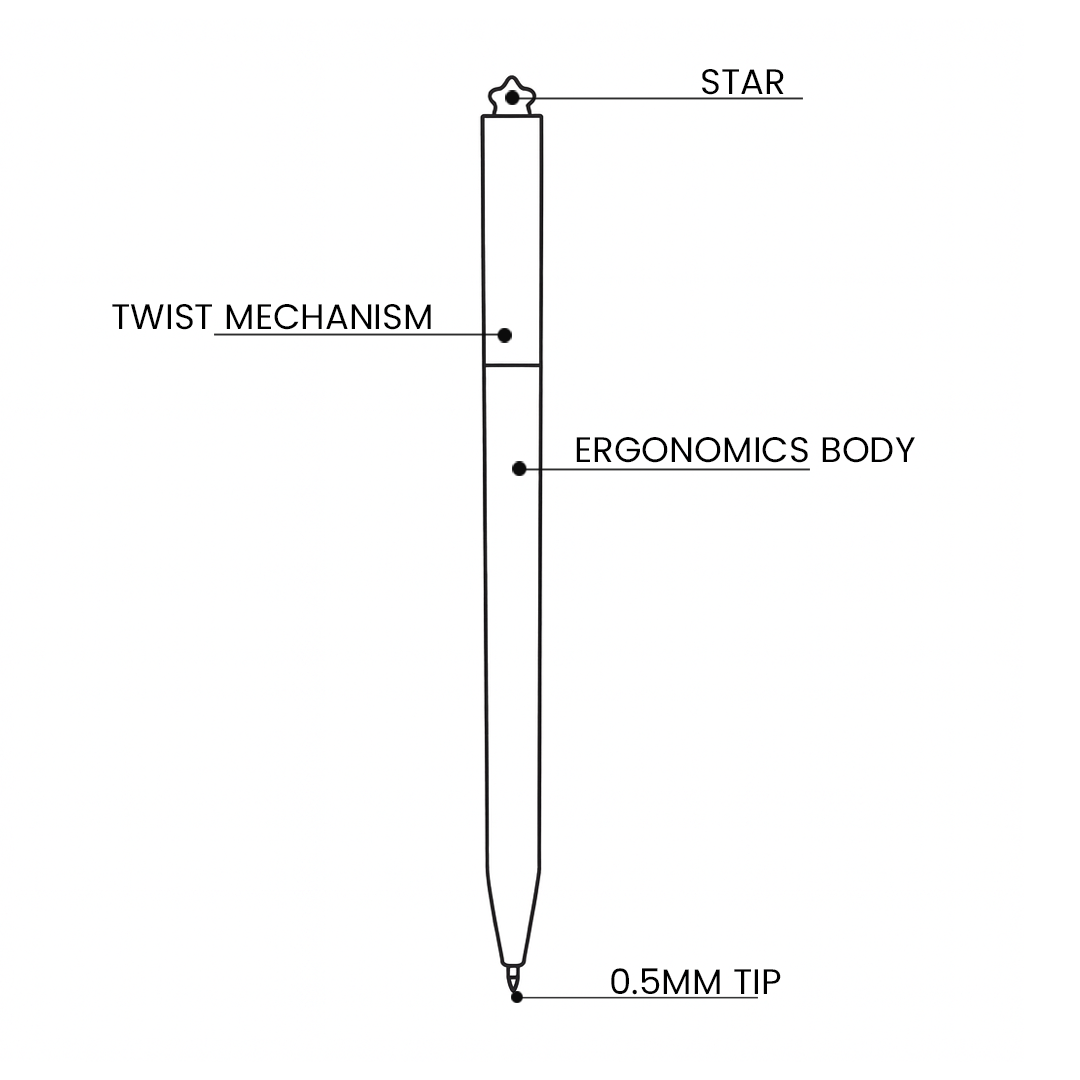 - Refill: 0.5mm bullet point black refill.