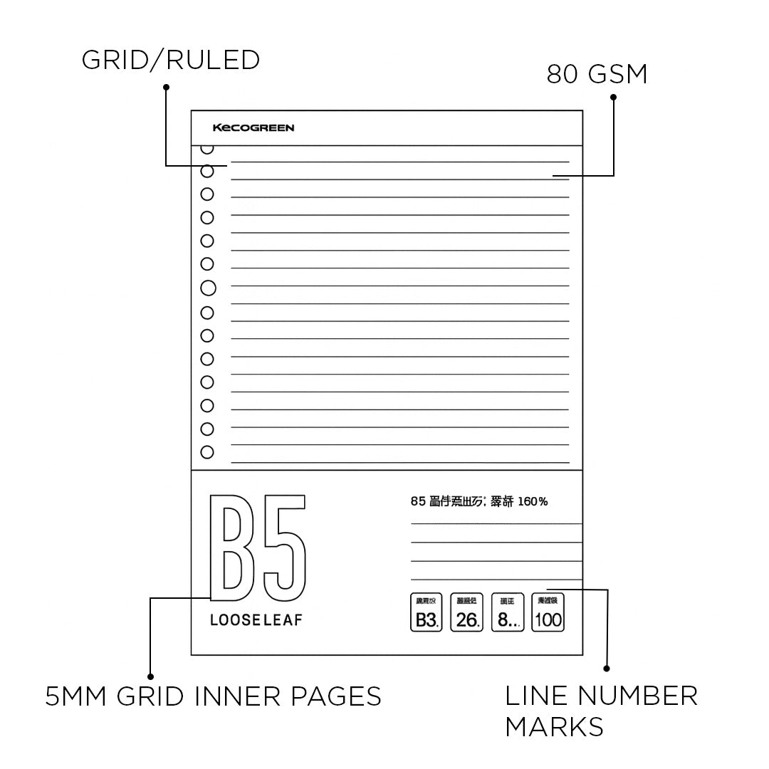 - Each set has a capacity of 100 sheets, with two inner pages of grid and horizontal lines to meet different needs.