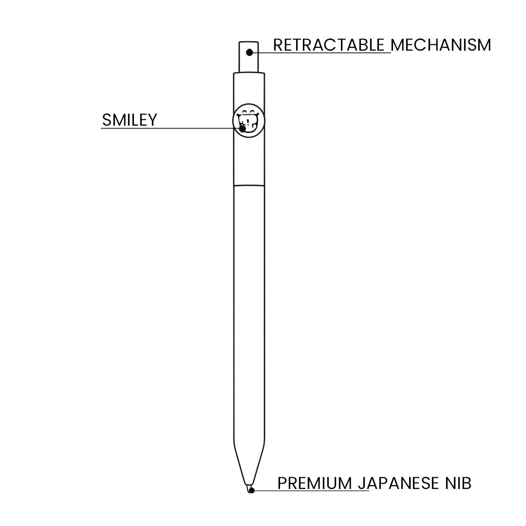 - The pen comes with a funny smile and controls the cheerful writing mode.