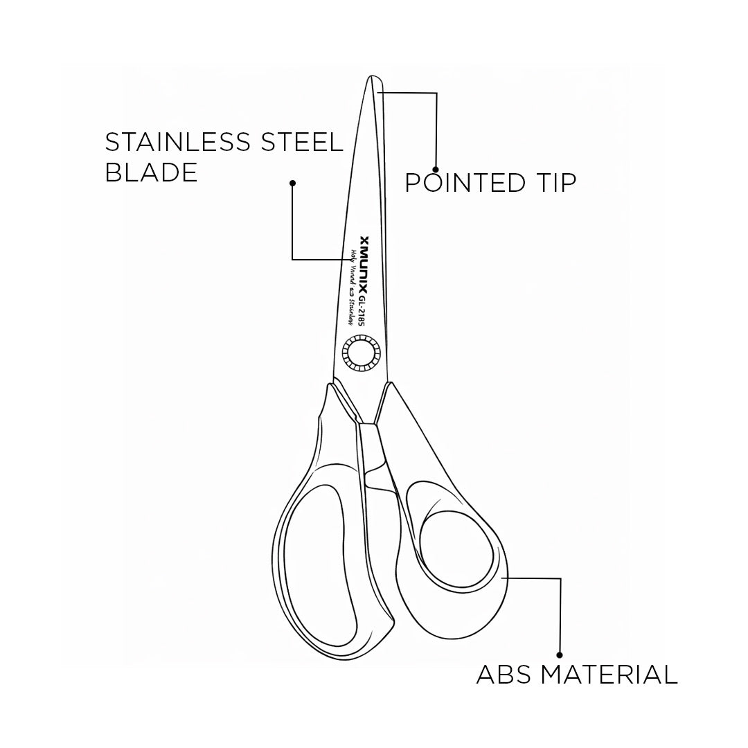 - Featuring durable stainless steel blades, these scissors provide long-lasting sharpness and smooth performance on paper, cardboard, fabric, and other materials.